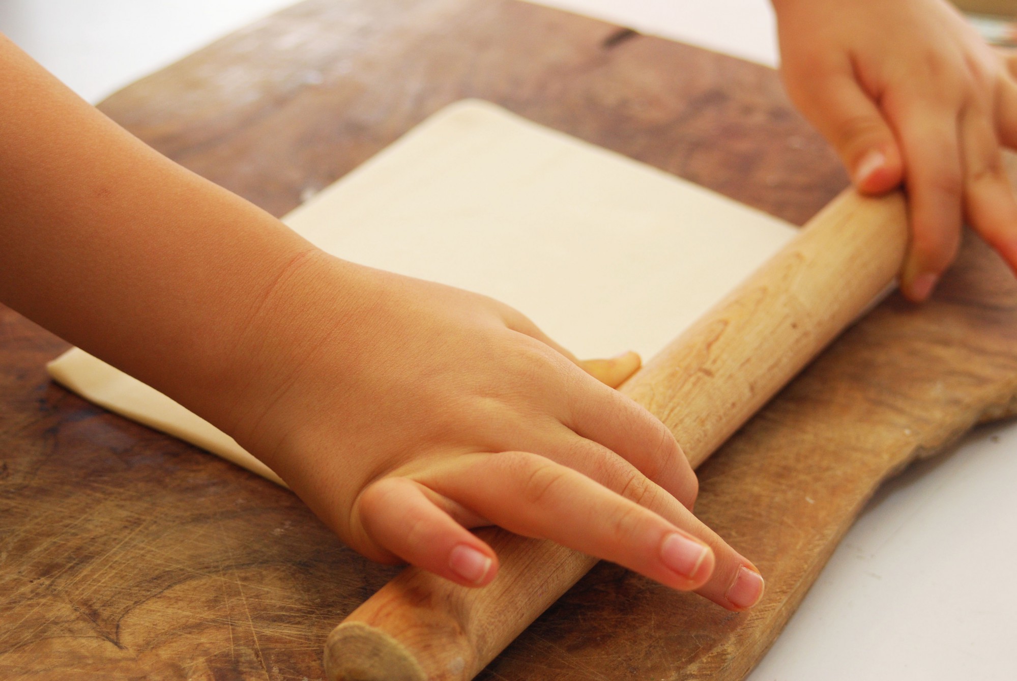生地を伸ばす工程は、ぜひともお子さんとご一緒にお楽しみください。生地を伸ばして成形する過程には手先の運動が必要です。子どもの頭の体操や手指の運動など、発育の促進に効果的ですよ。どんな仕上がりになってもおいしくいただけますので、仕上がりの美しさにこだわらず、子どものアイデアや発想を存分に発揮してもらいましょう!