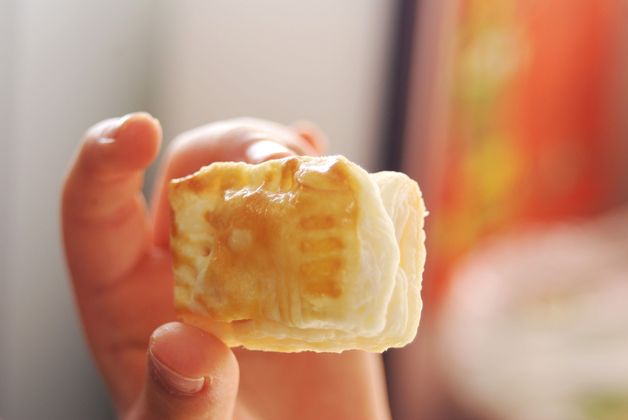 パイ生地を冷凍庫から取り出したら、10分ほど置いておき自然解凍させましょう。