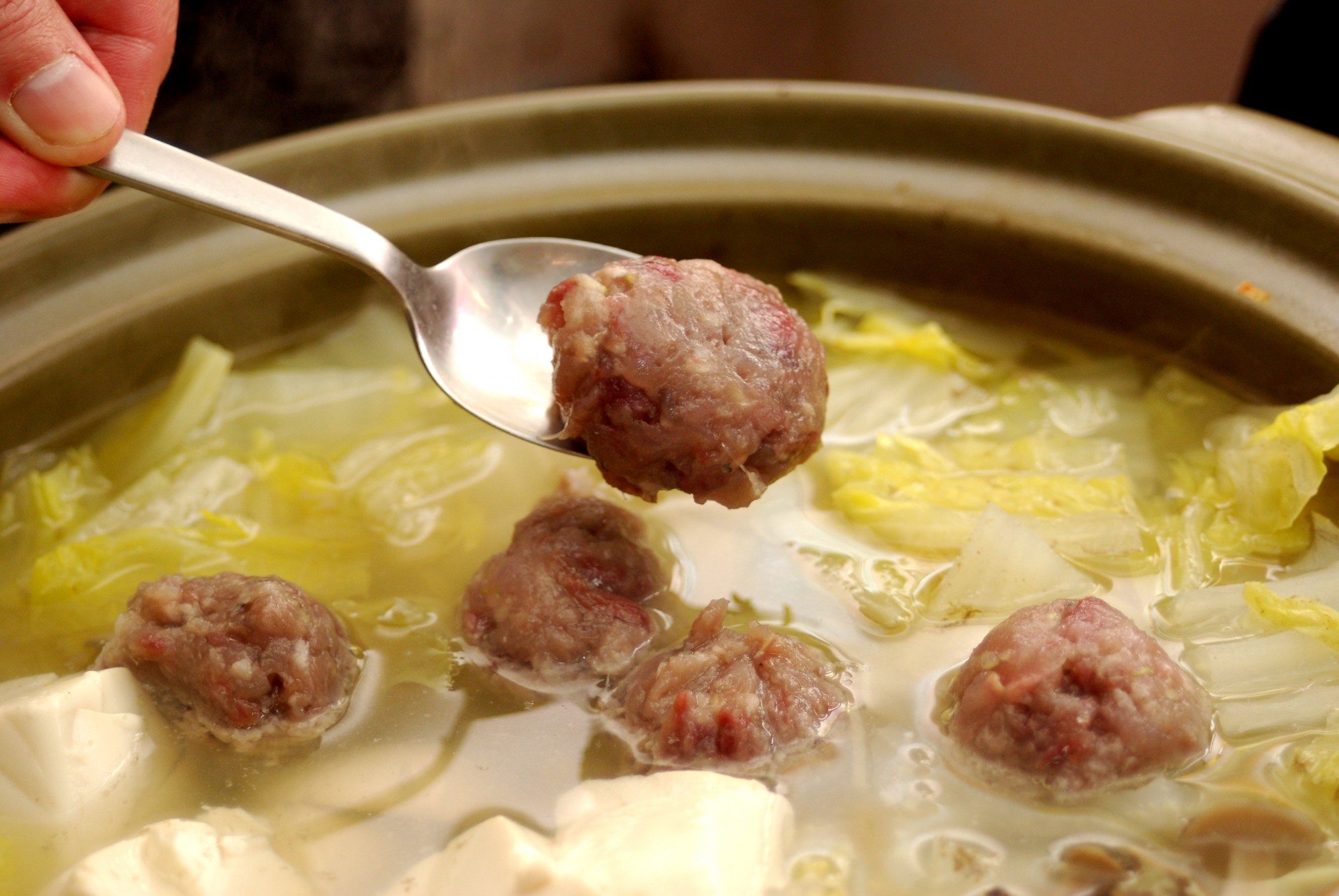 丸めた団子はそのまま鍋に入れます。