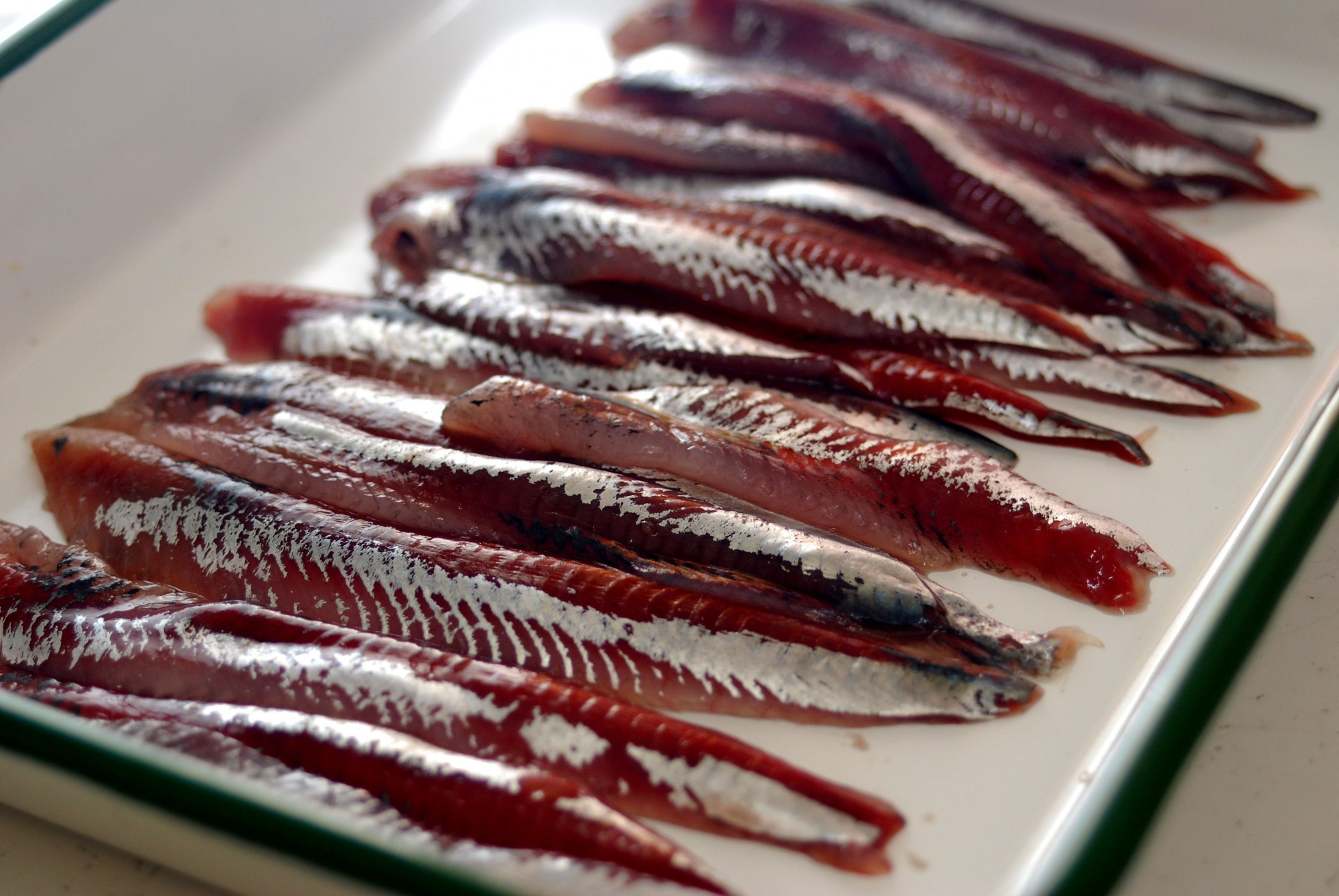 お腹の中をよく洗ったら、いわしを開いて中骨を取り除き、皮をむきます。写真のようなフィレ状になればOKです。