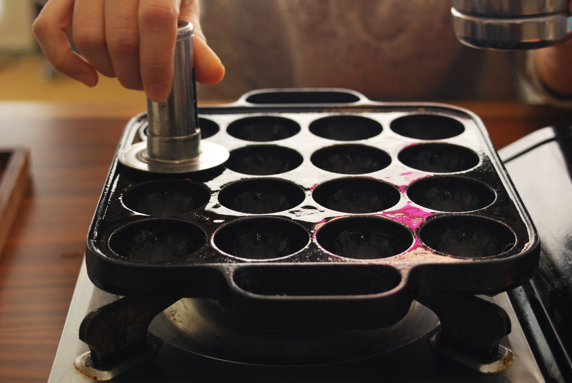 鉄製のたこ焼き器を使う場合は、たこ焼き器を、焼くのに適した状態にする必要があります。まずは油を引かない状態で、白い煙が上がるくらいまで空焼きします。