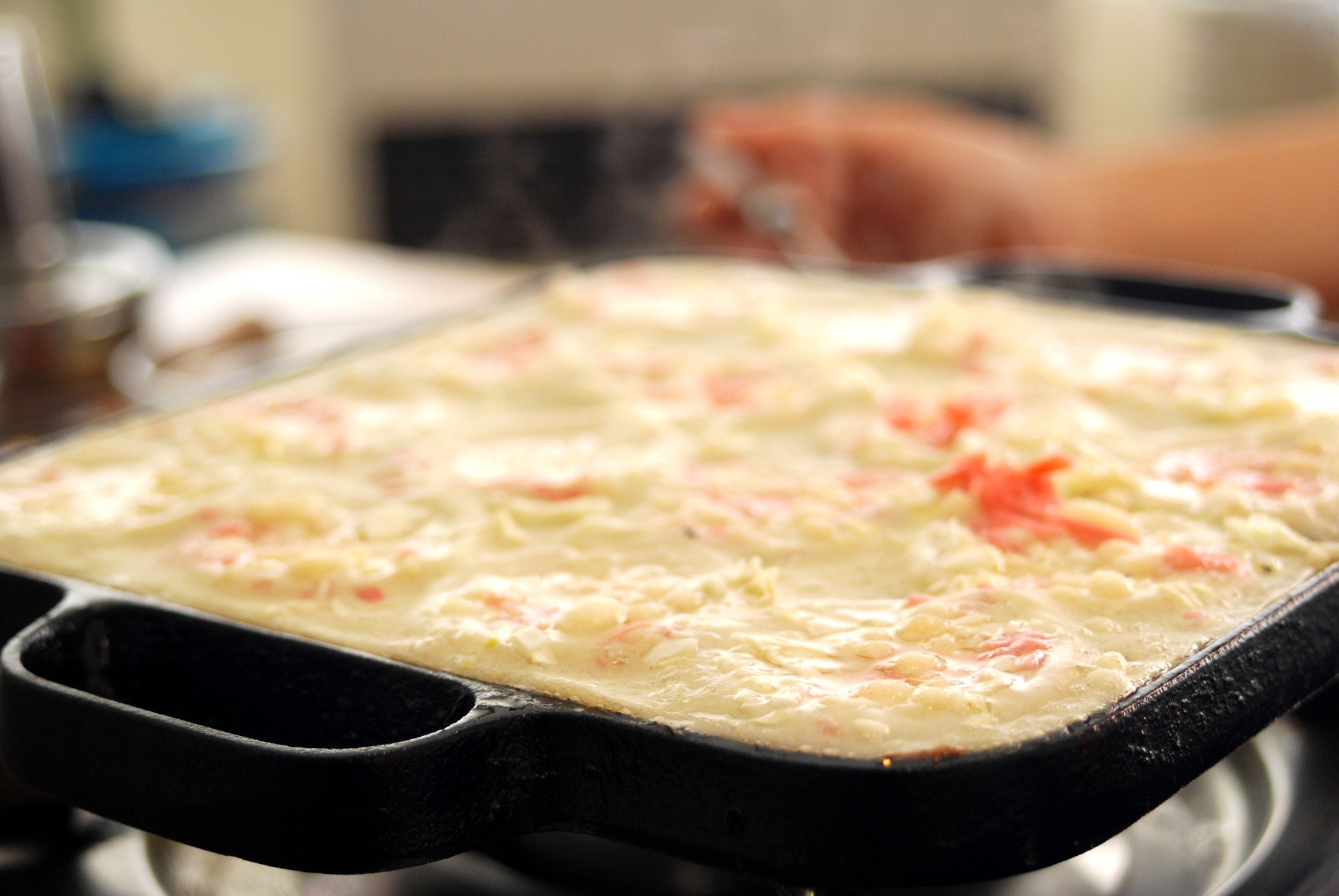 生地を流してしばらくの間は、さわらずそのまま置いておきます。