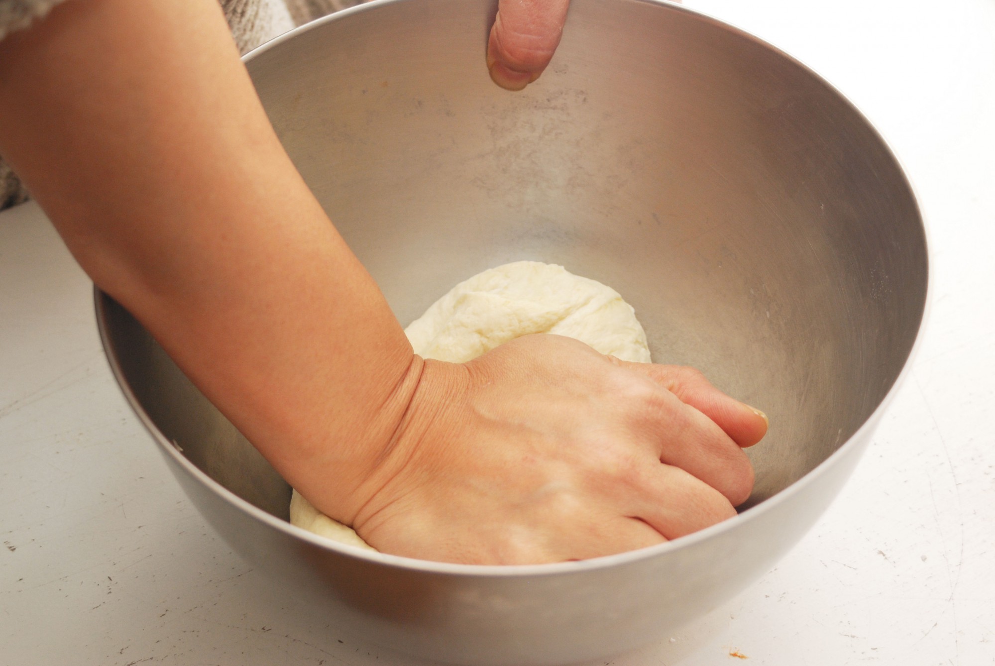 生地をよくこねたらボウルに戻し、ラップをして休ませましょう。生地を直接ラップで包んでも構いません。