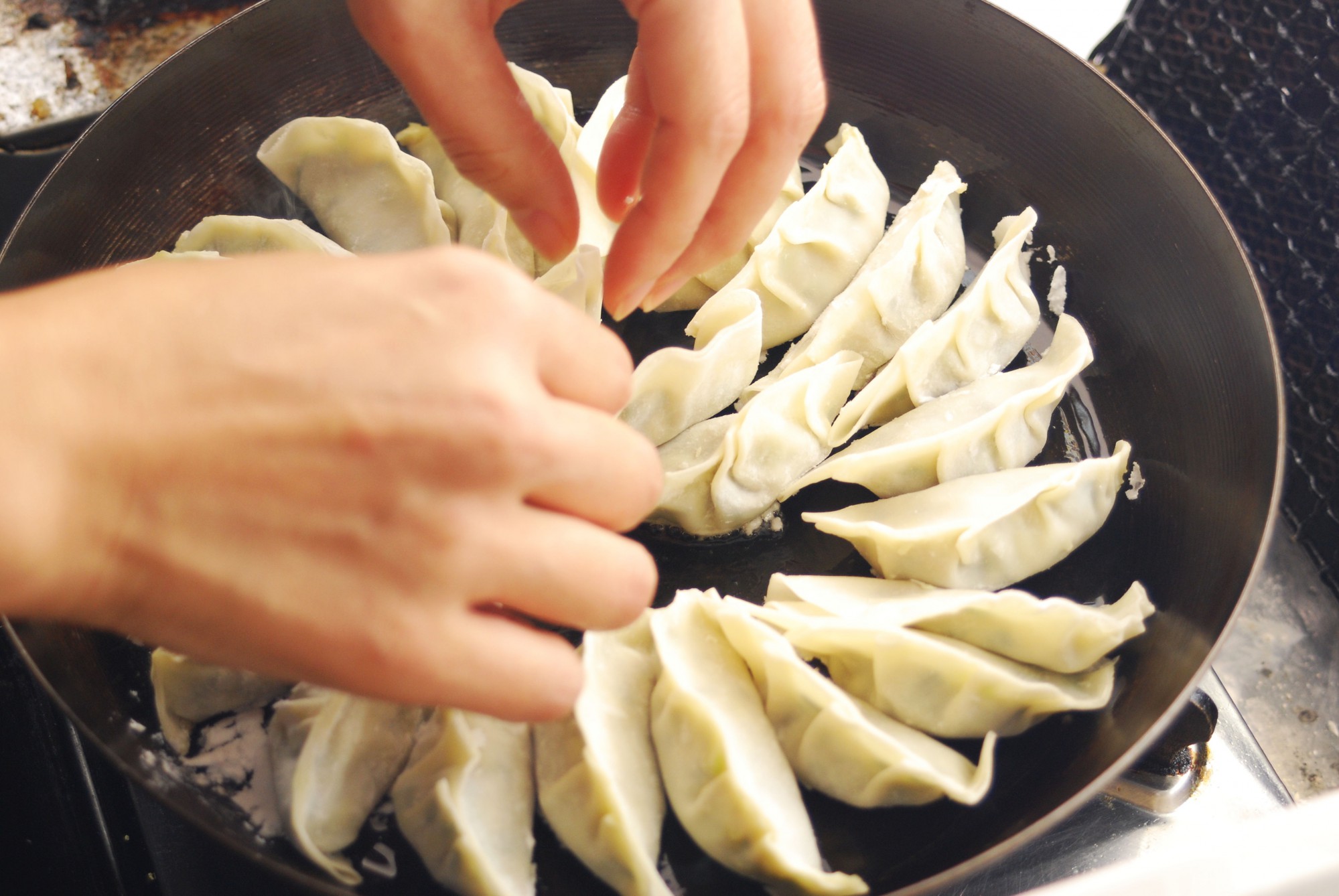 鉄製のフライパンを使う場合は、フライパンをあらかじめ空焼きして十分に温めておきましょう。そうすることで油を引きやすくなるだけでなく、餃子がくっつきにくくなります。