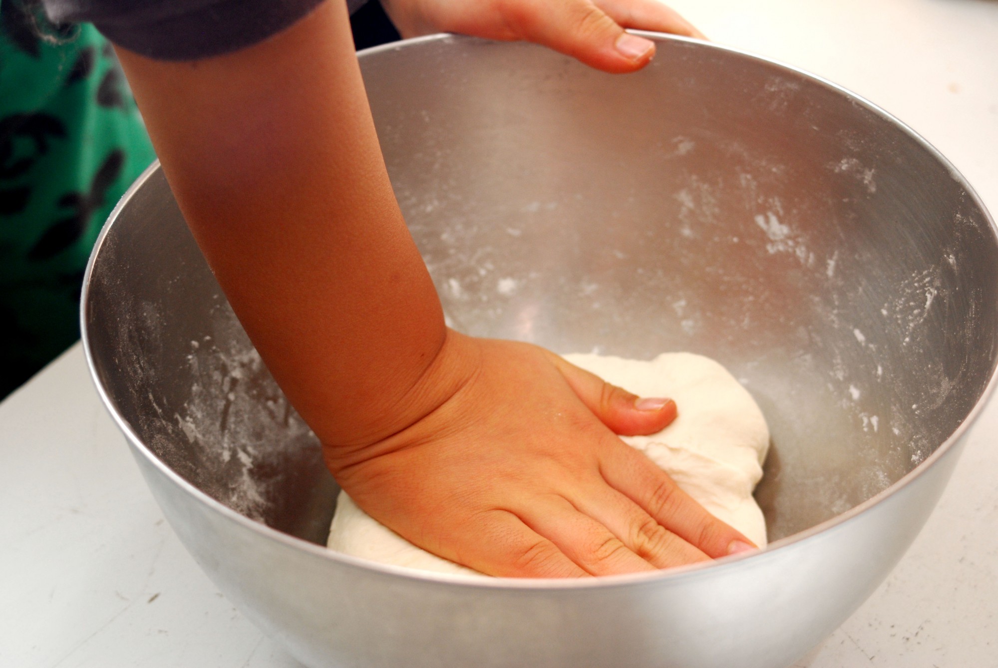 子どもの力では生地を練るのが難しい場合があります。その場合は厚手のポリ袋などに生地を入れ、足で踏みながら生地をこねるといいでしょう。