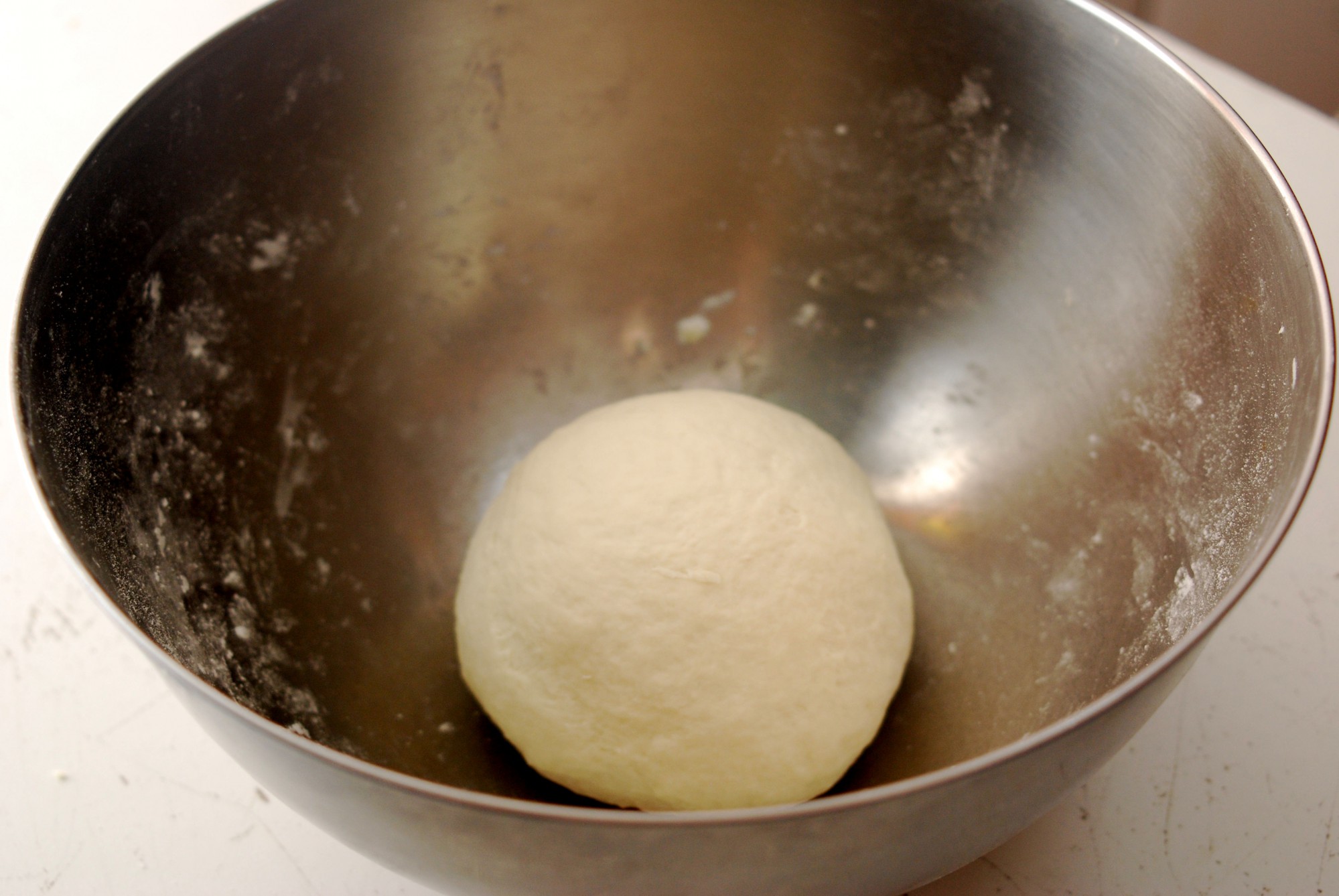 水が全体に行き渡ったら、生地をぎゅっとひとまとめにします。ここでようやく生地を練り始めます。体重をかけるようにして生地をしっかりこねましょう。