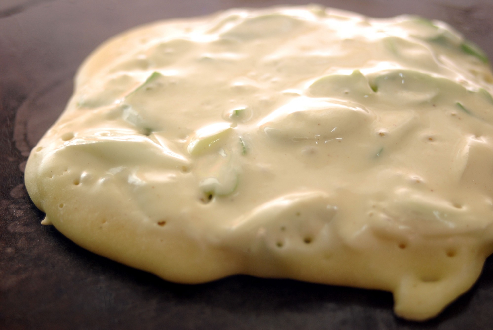 鉄板にごま油を引いて熱したら、生地をおたまですくい鉄板の上に丸く広げます。フライパンで焼く場合も同様です。中までしっかり火が通るように、弱火から中火で時間をかけて焼くのがいいでしょう。