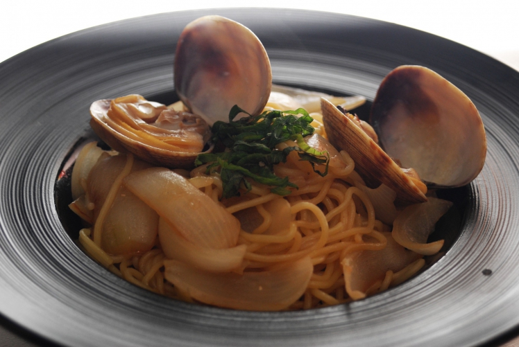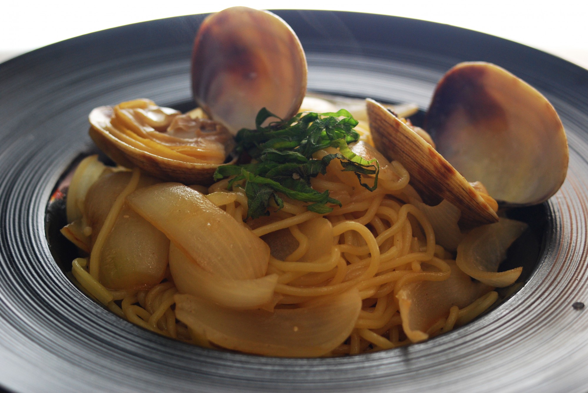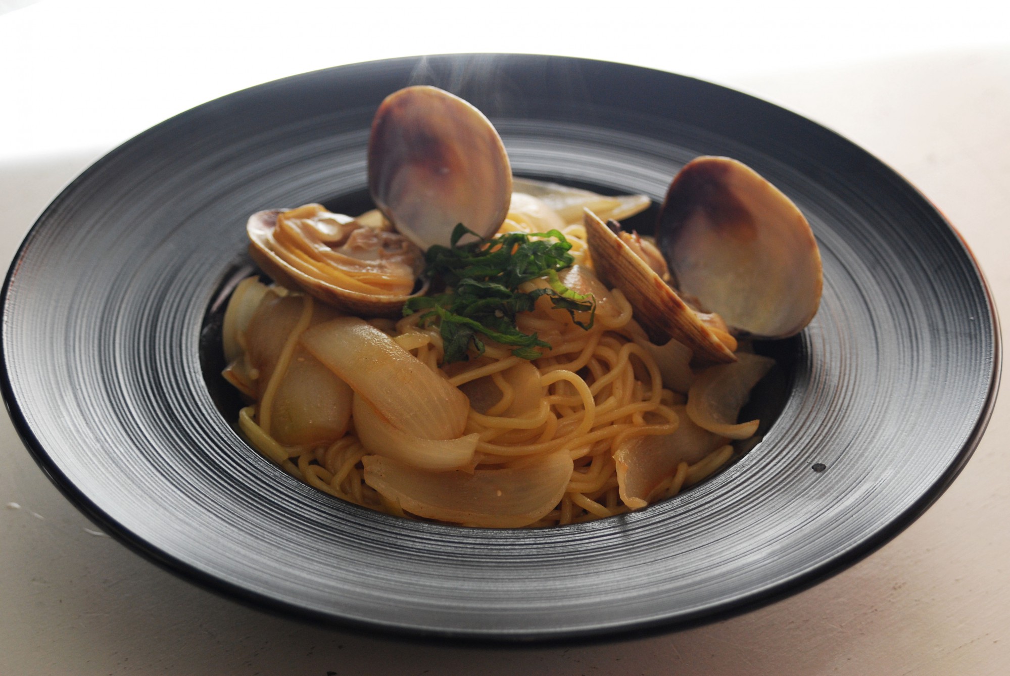 浦安名産のあさりを主な具材として使用し、あさりの出汁とバターを合わせ、レモンとたっぷりの大葉でまとめるのが特徴。