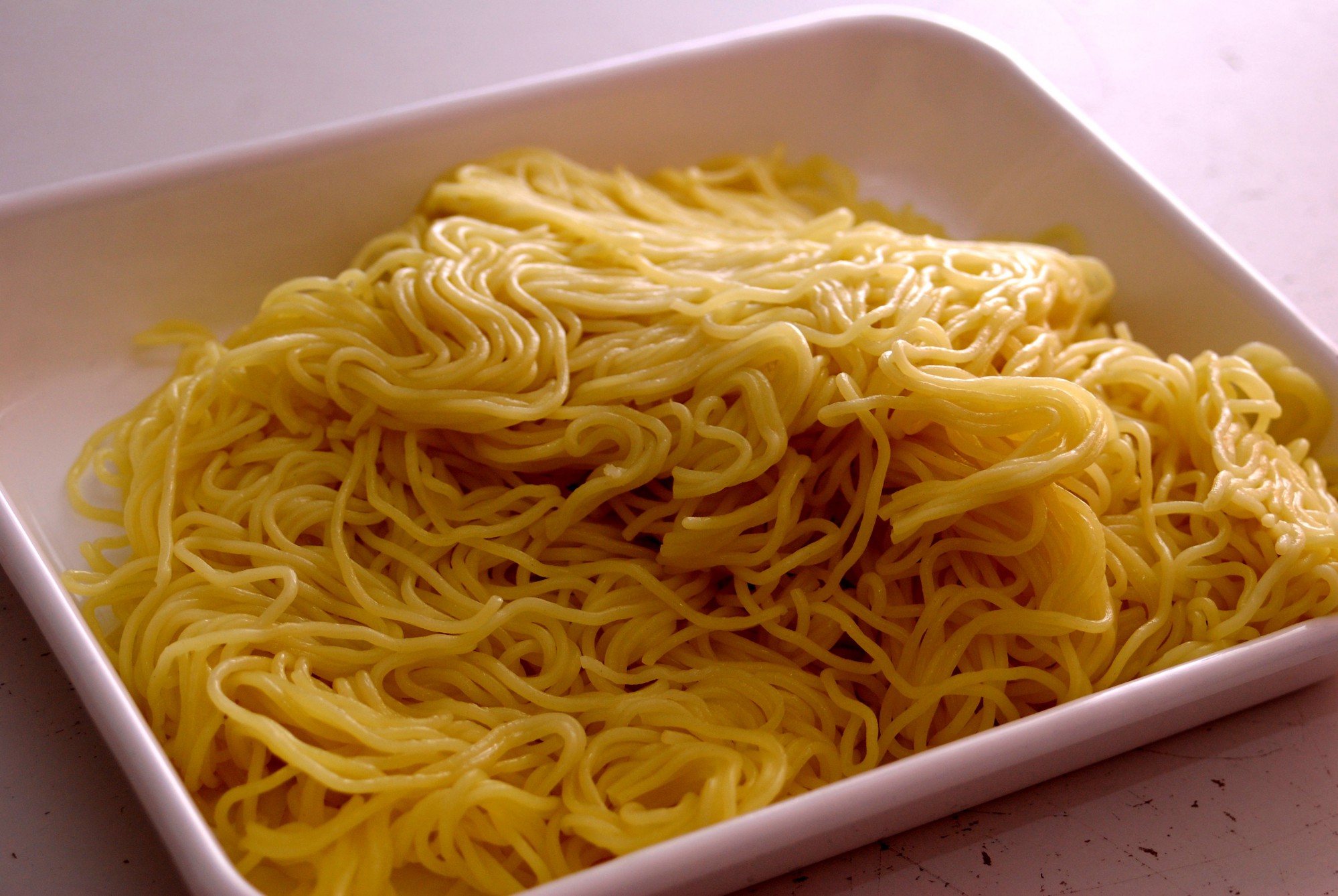 焼きそばの麺は一般的な蒸し麺を使いましょう。蒸し麺の袋の一部を小さく切り開き、電子レンジで1分(600w)温めます。麺を温めたら袋の上からよく揉んでほぐしましょう。