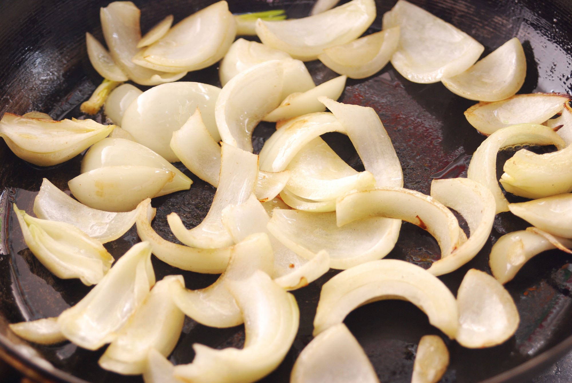 バターを引いて温めたフライパンにカットした玉ねぎを入れて炒めます。玉ねぎ全体に火が入り透明になってきたら次の工程に進みましょう。
