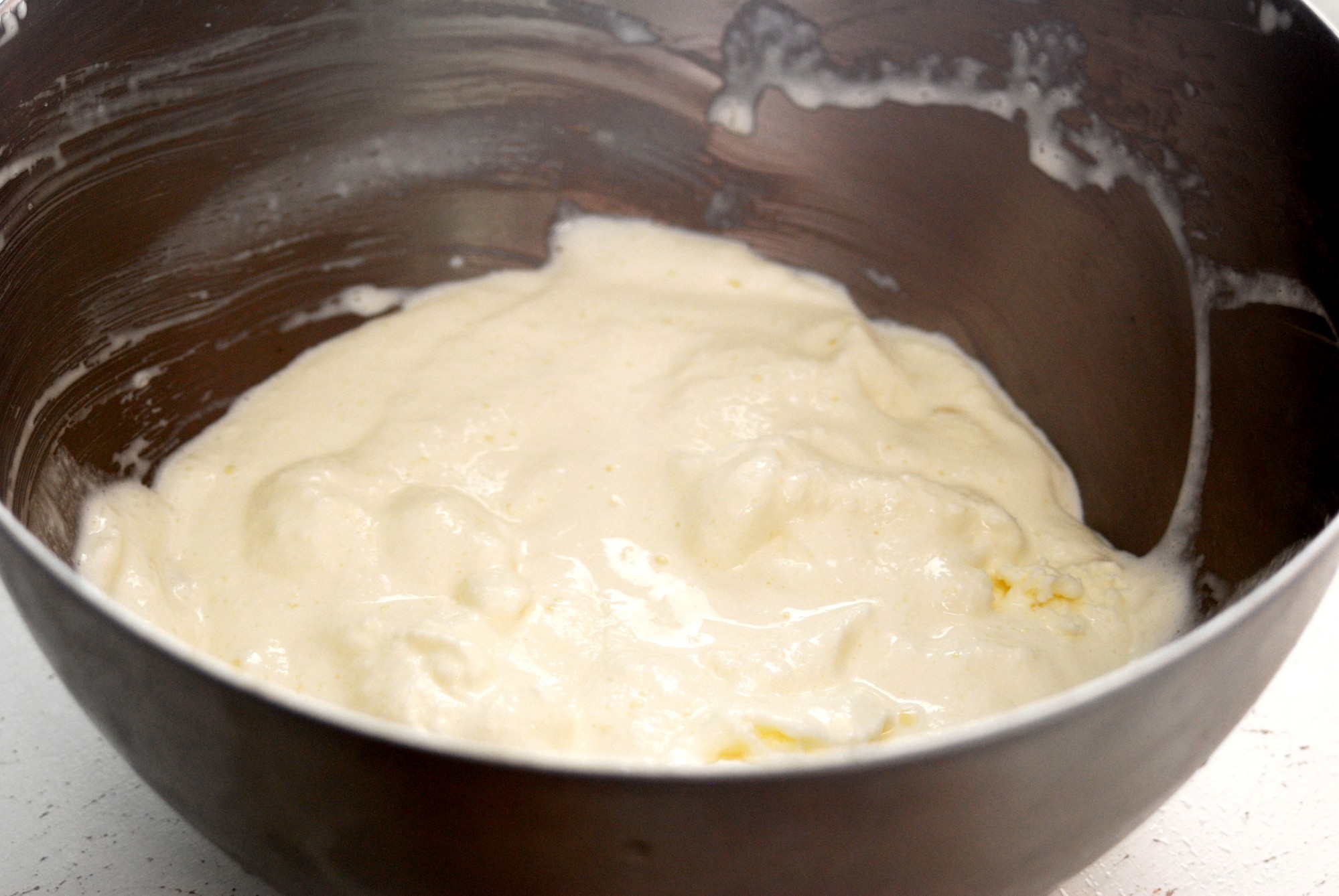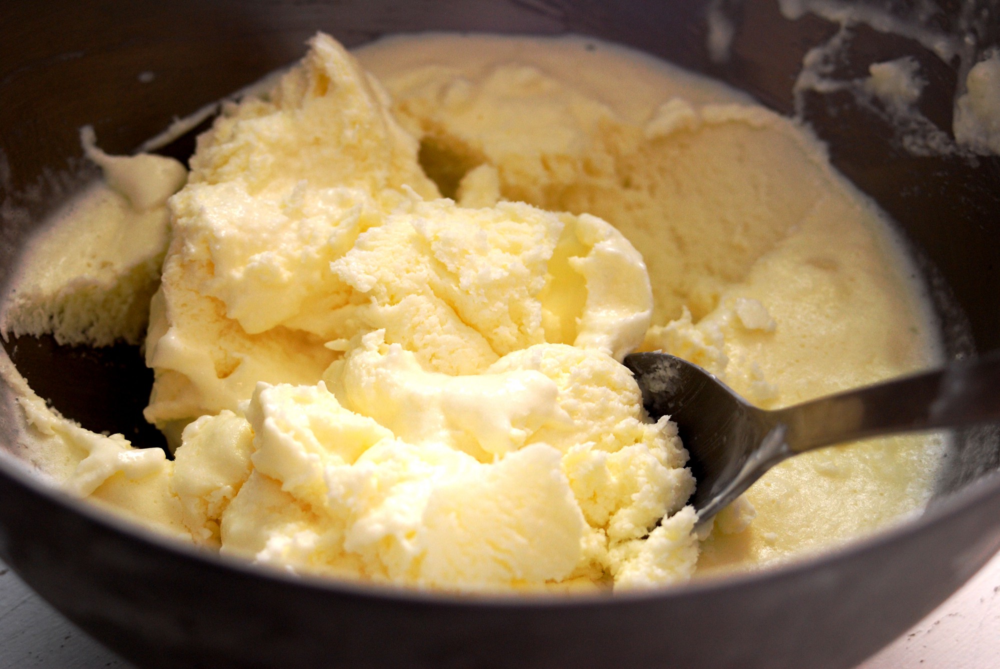 もしこの時点で泡立て器で混ぜられるくらい柔らかいようでしたら、再度泡立て器で混ぜるときめ細やかなで柔らかいアイスクリームになります。できるだけ空気をたくさん含ませると、食感の軽いおいしいアイスクリームになります。