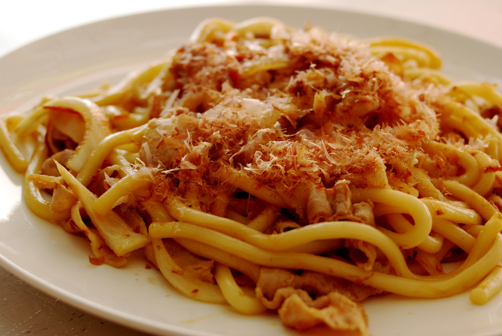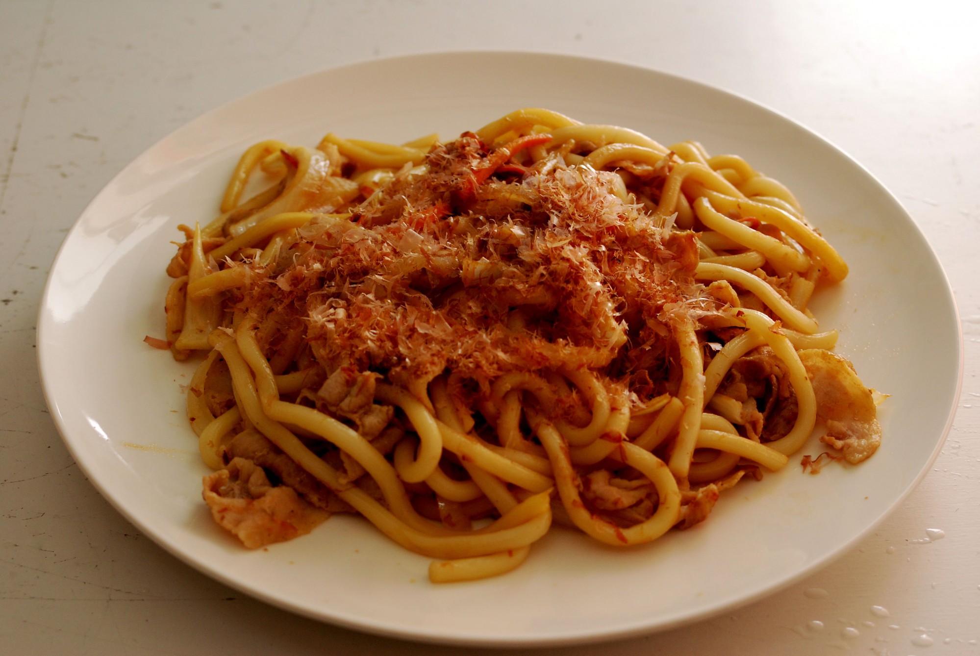 オーソドックスな和風焼きうどんに使用する材料(1人分)は以下の通りです。
