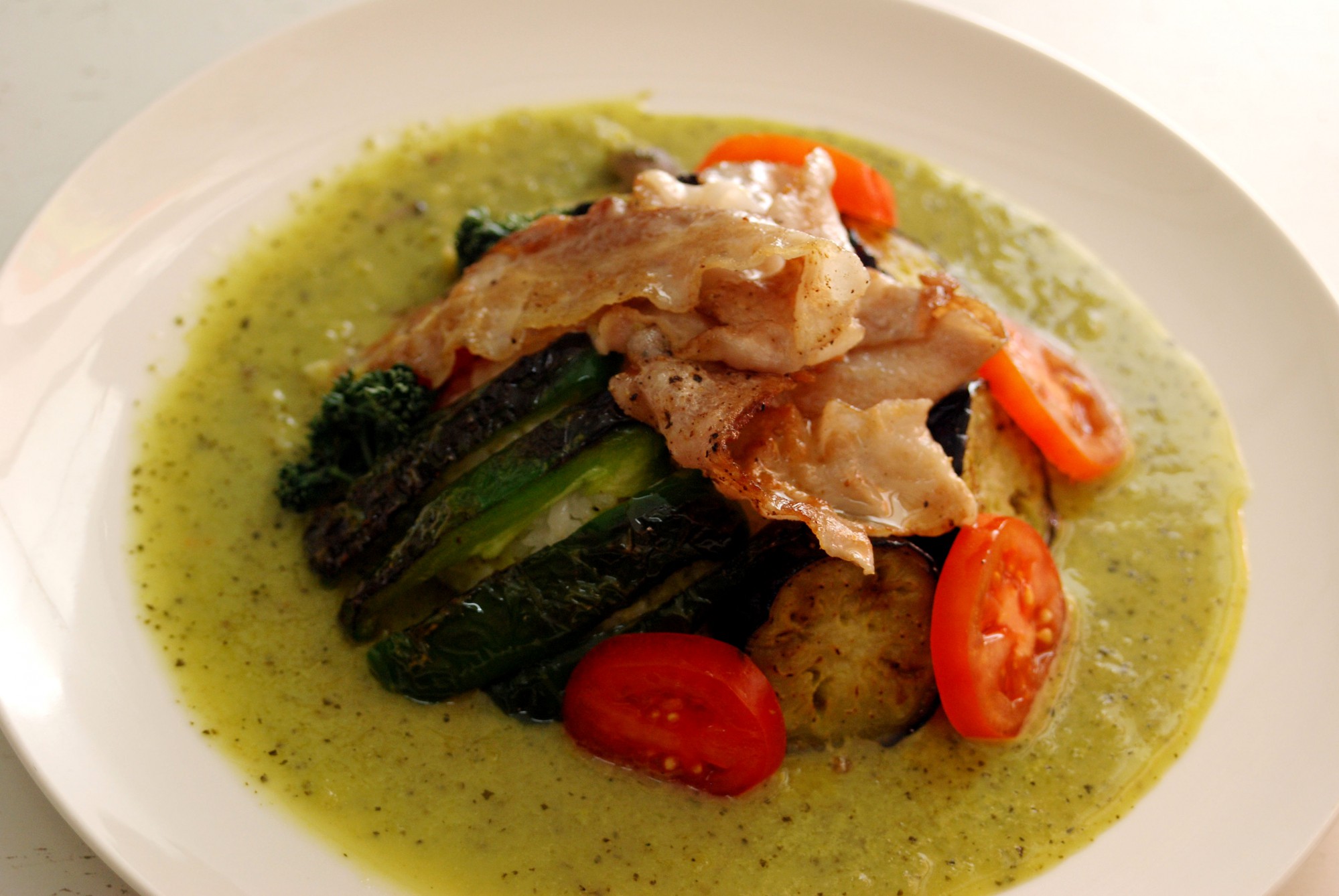 野菜たっぷりでボリューム満点の八千代風グリーンカレーは、ほんの少しぜいたくでオシャレなランチや、胃に優しい夕食におすすめ。彩りを意識して盛りつけると、とてもおうちごはんとは思えないごちそうになりますよ。