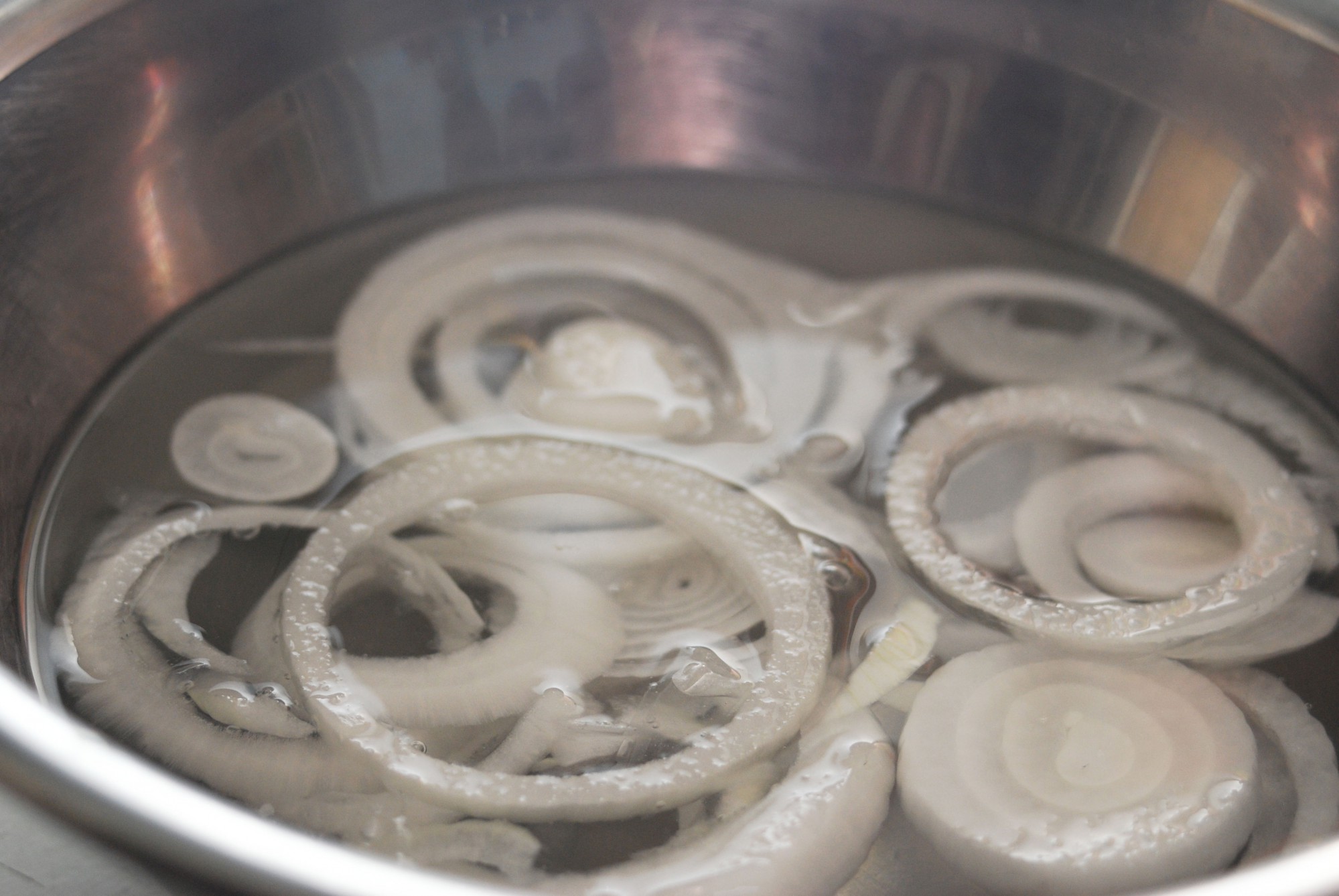 玉ねぎをさらす水にはレモンを絞ったり、小さじ1杯程度の白ワインビネガーやりんご酢などを入れたりすると、爽やかな仕上がりになります。