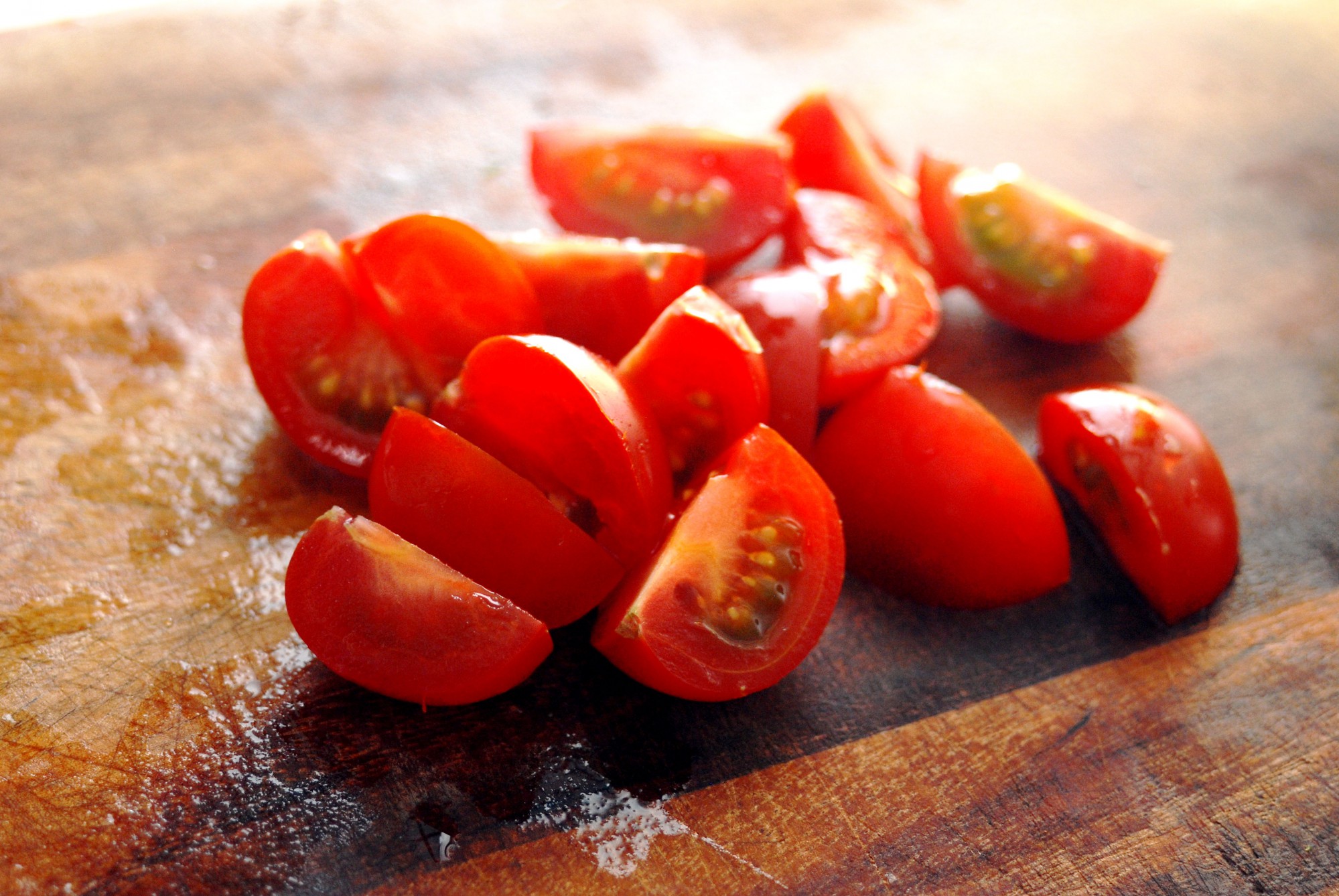 ミニトマトは、ヘタを取って洗えばそのまま丸ごと食べられます。果実の中のゼリーがドレッシングと混ざると味に深みが出るので、サラダに使う際は半分にカットするか、1/4カットで使うのがおすすめ。