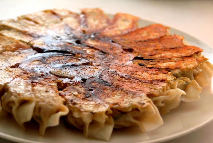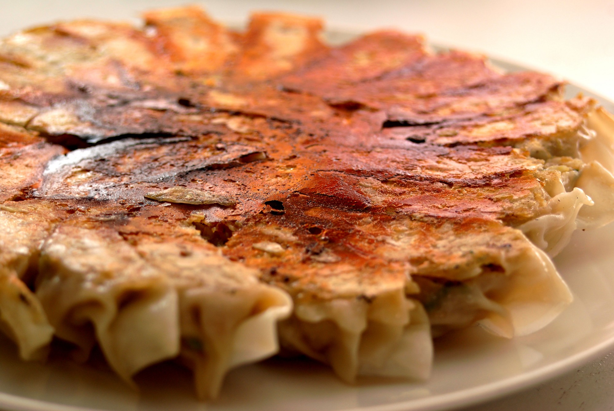 水気がなくなりパチパチという音がしてきたらフタを取り、火を弱火に落とします。水気がなくなり餃子の底がカリッと焼きあがったら完成です。