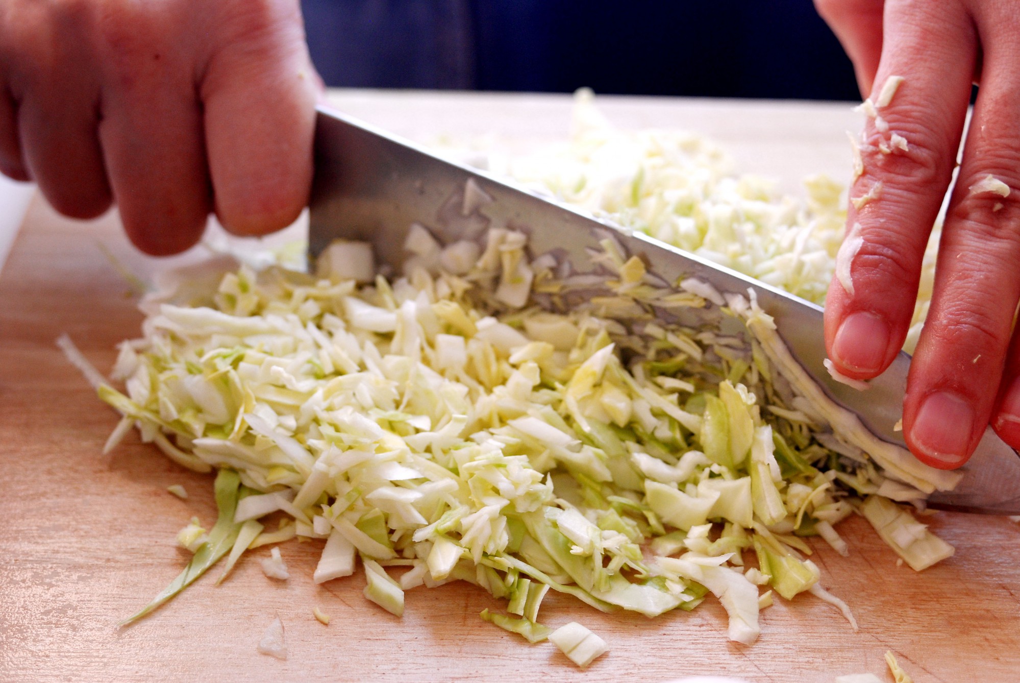 洗ったキャベツの水をしっかりと拭き取り、みじん切りにします。