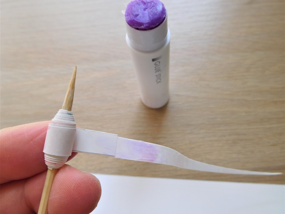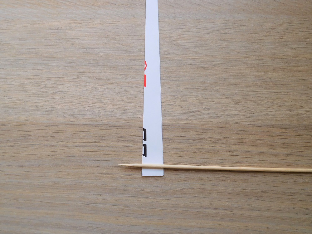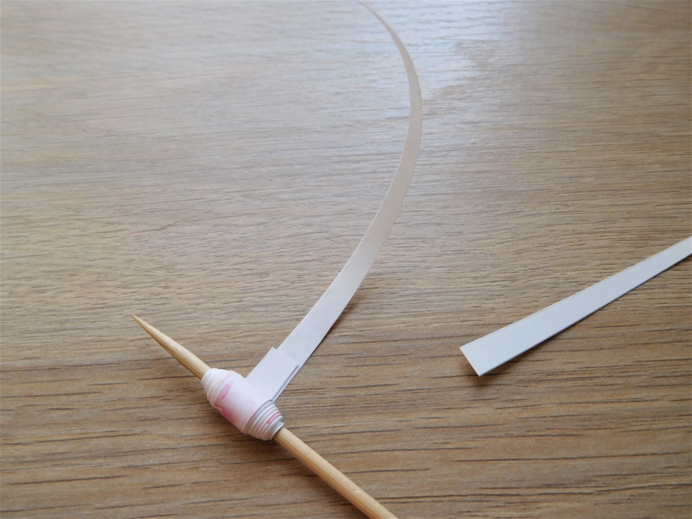 最初の2、3巻きはテーブルに置いたまま、ぎゅっと押し付けるように紙ごと竹串を回転させていきましょう。