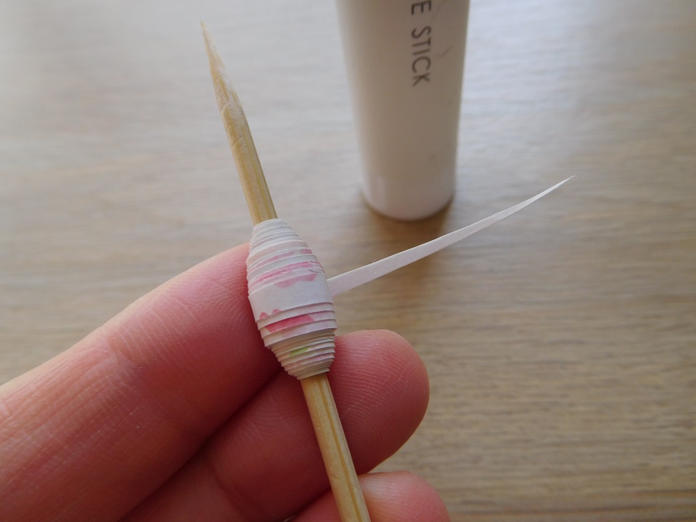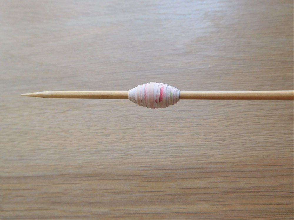 ペーパービーズが1つ完成しました!できたら竹串から外しましょう。