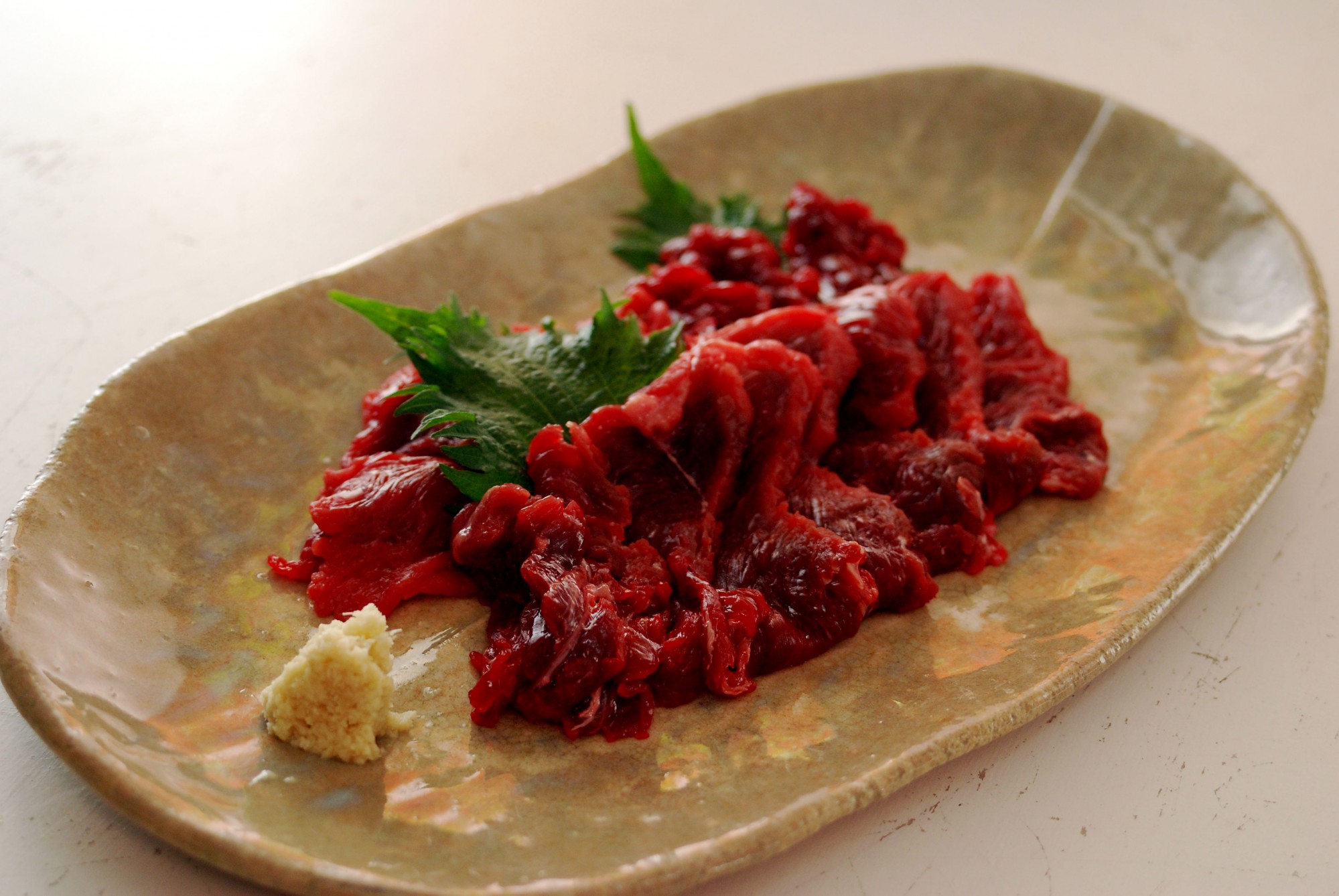クジラを刺身で楽しむ際は、ぜひともおろし生姜を添えてください。クジラとしょうがの相性は抜群です。ほかにもおろしにんにくやわさび、大葉との相性も抜群ですよ。