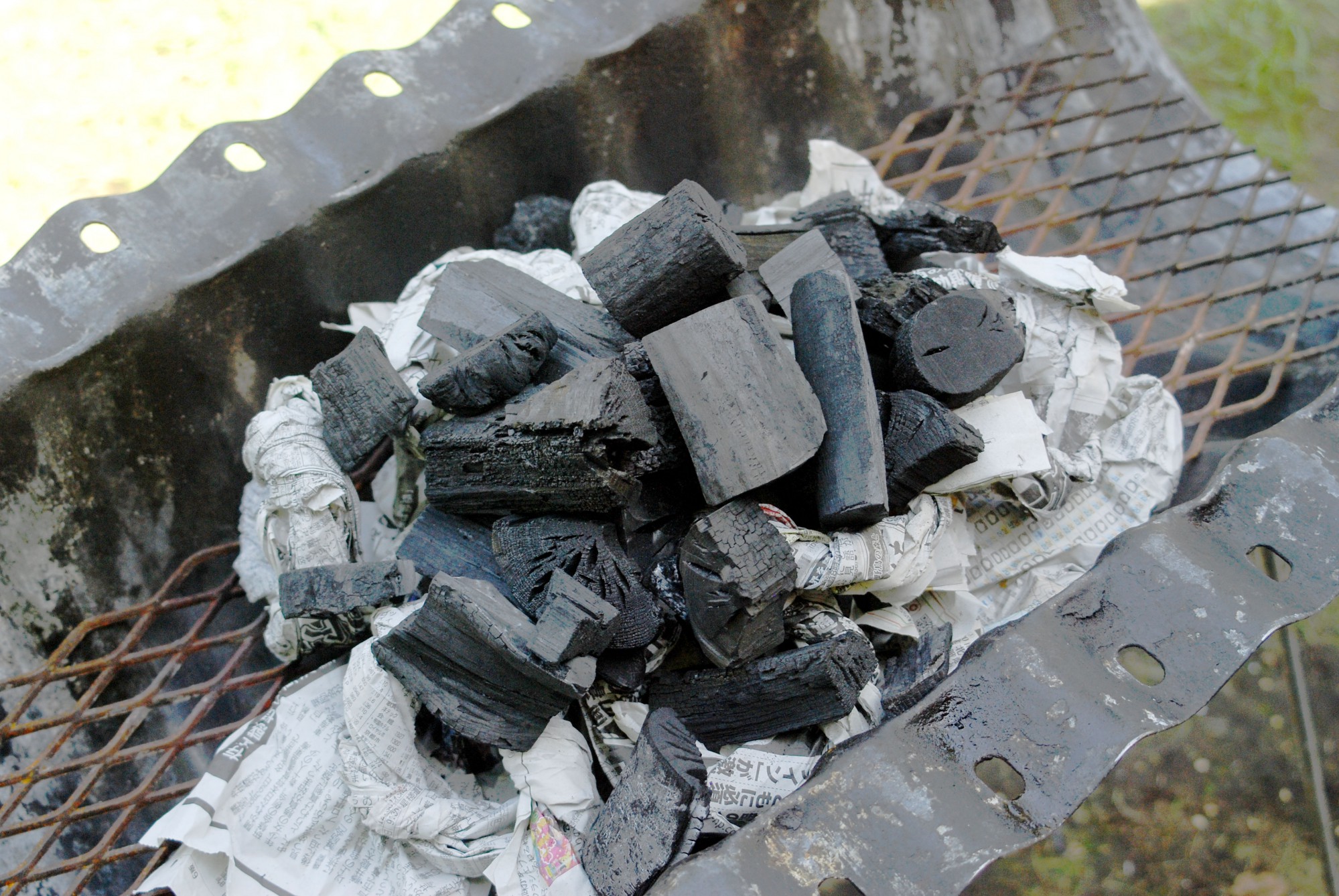 次はいよいよ火おこしです。今回は大きめのバーベキューコンロを使用していますが、七輪などを使用する場合でも基本的な手順は同じです。