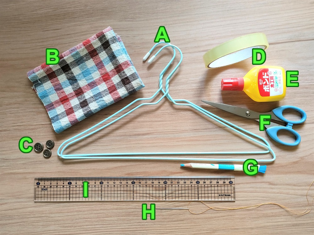 裂き布タイプのハンガーリメイクには、以下のものを用意します。