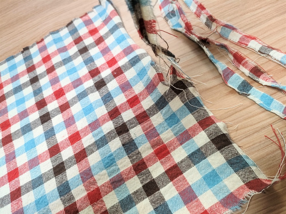 自宅にはぎれが残っているのならそれを利用しましょう。ただ、厚い布や伸縮性のある布は裂きにくいので、不向きです。また、やや目の粗い布の方が布端のざっくり感が出て、表情豊かな仕上がりになります。