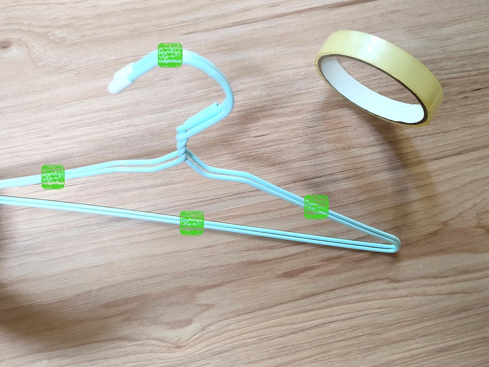 毛糸のハンガーリメイクでも、2本のハンガーの仮止めは同様に行います。仮止めを終えたら、毛糸を巻いていきましょう。