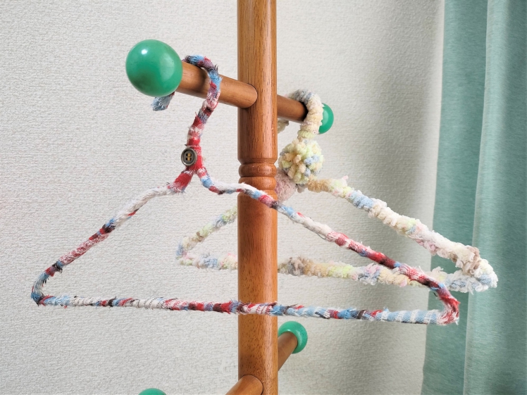 春から夏の季節におすすめなのが裂き布タイプ。布を裂いておく準備は必要ですが、いざハンガーを加工する段階になると扱いやすいのがこちらです。
