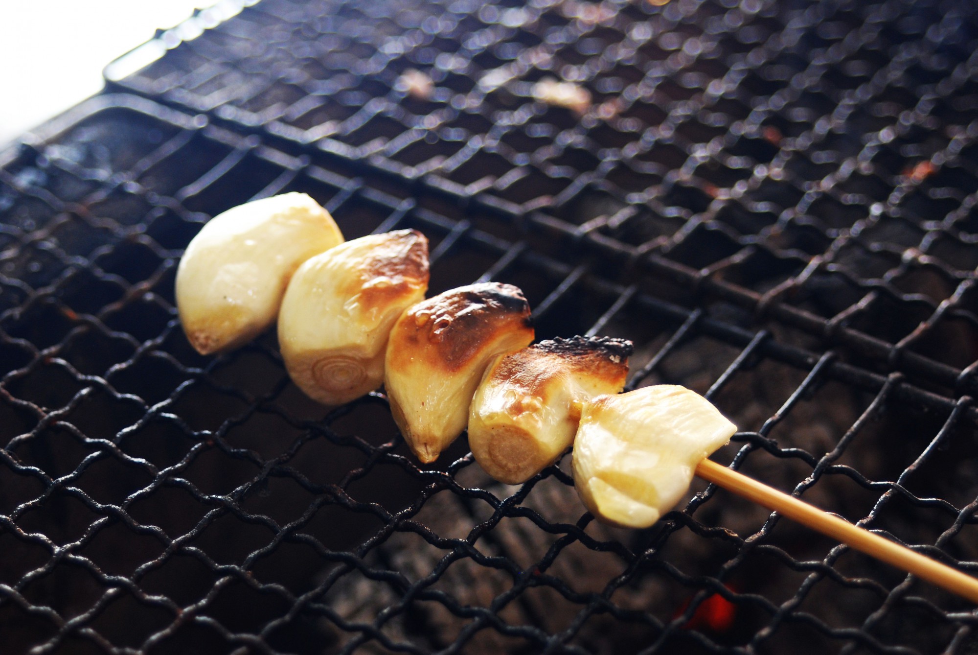 皮をむいて根本部分を切り落としたにんにくを串に通し、ごま油と塩を振りかけて焼く料理です。塩を多めに振ると、ビールやお酒にぴったりのテイスト。栄養たっぷりなので夏バテ防止にもよさそうですね。