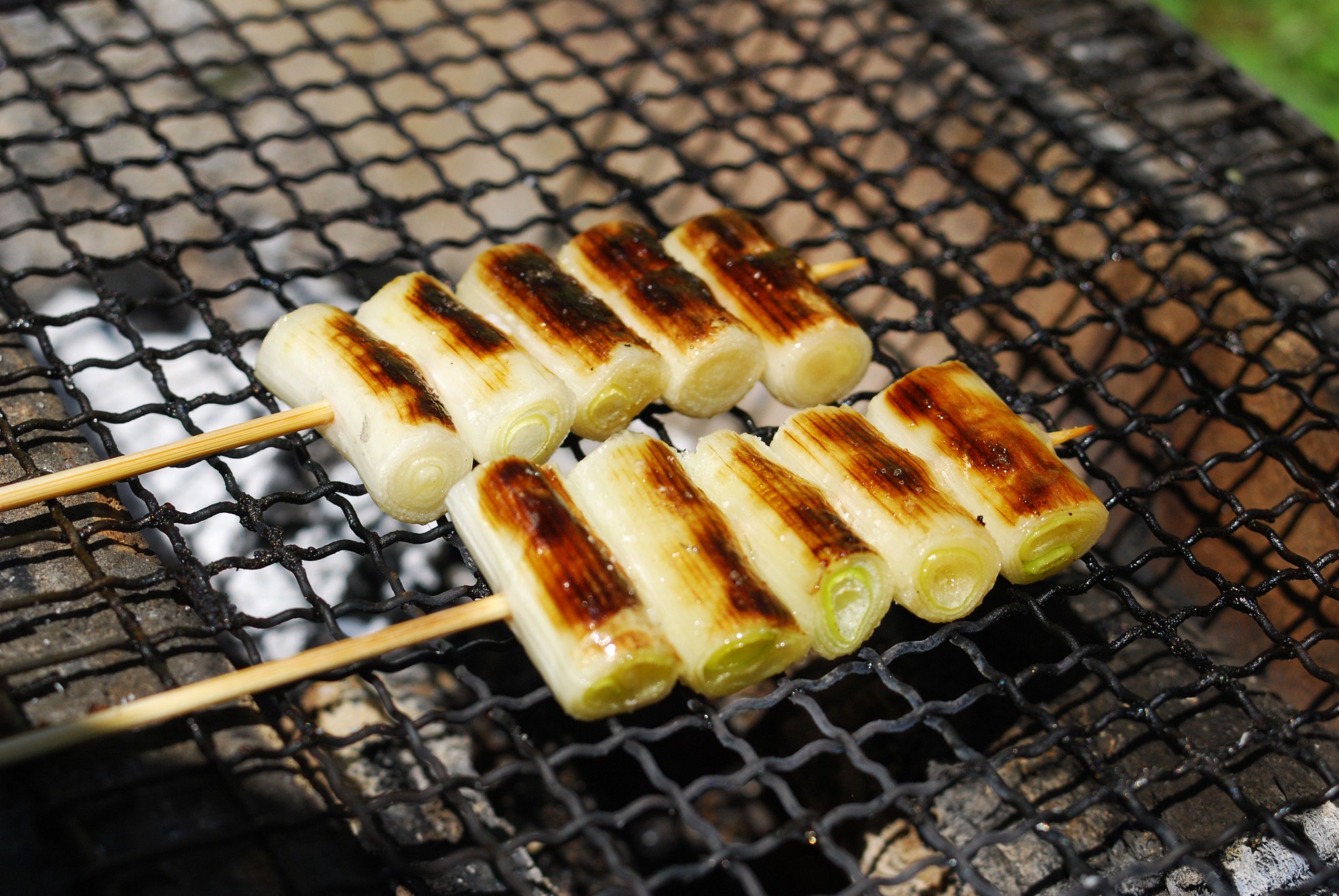 こちらもゴマ塩にんにく焼き同様、食べやすい大きさにカットした長ねぎを串に通したら、ごま油と塩を振りかけて焼くだけです。焦げ目がつくくらいしっかり焼くと、長ねぎの中がトロッとおいしい食感となり、食べる手が止まらなくなります。