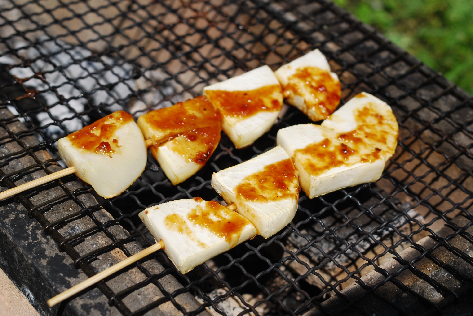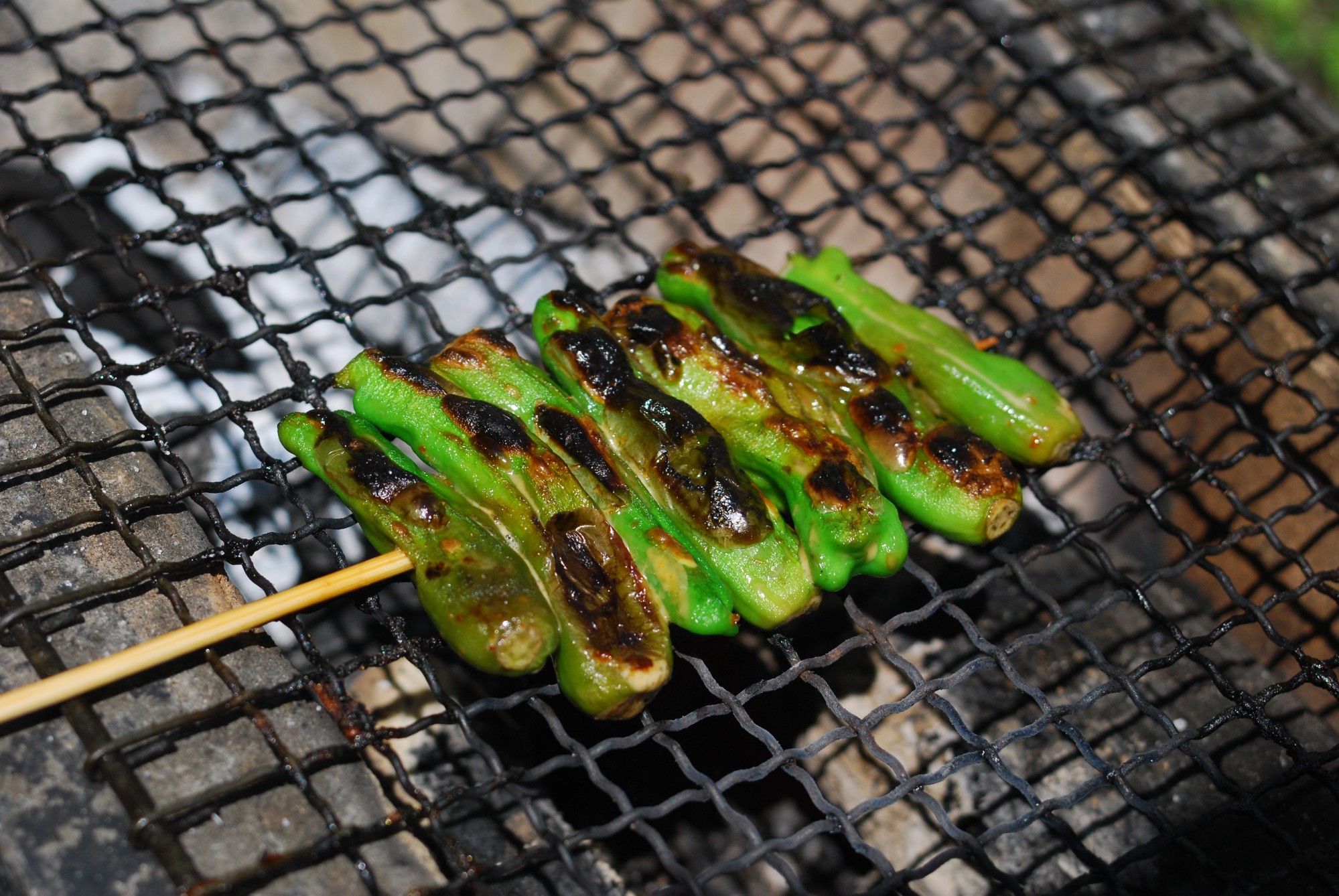 UNAUマガジンオリジナルの串野菜レシピは、栄養豊富な野菜をたっぷり摂れるだけでなく、アウトドア料理の楽しみが広がります。さまざまな野菜を使いますが、いずれも上の写真のように野菜を竹串に刺して炭火で焼くのが串野菜の特徴です。