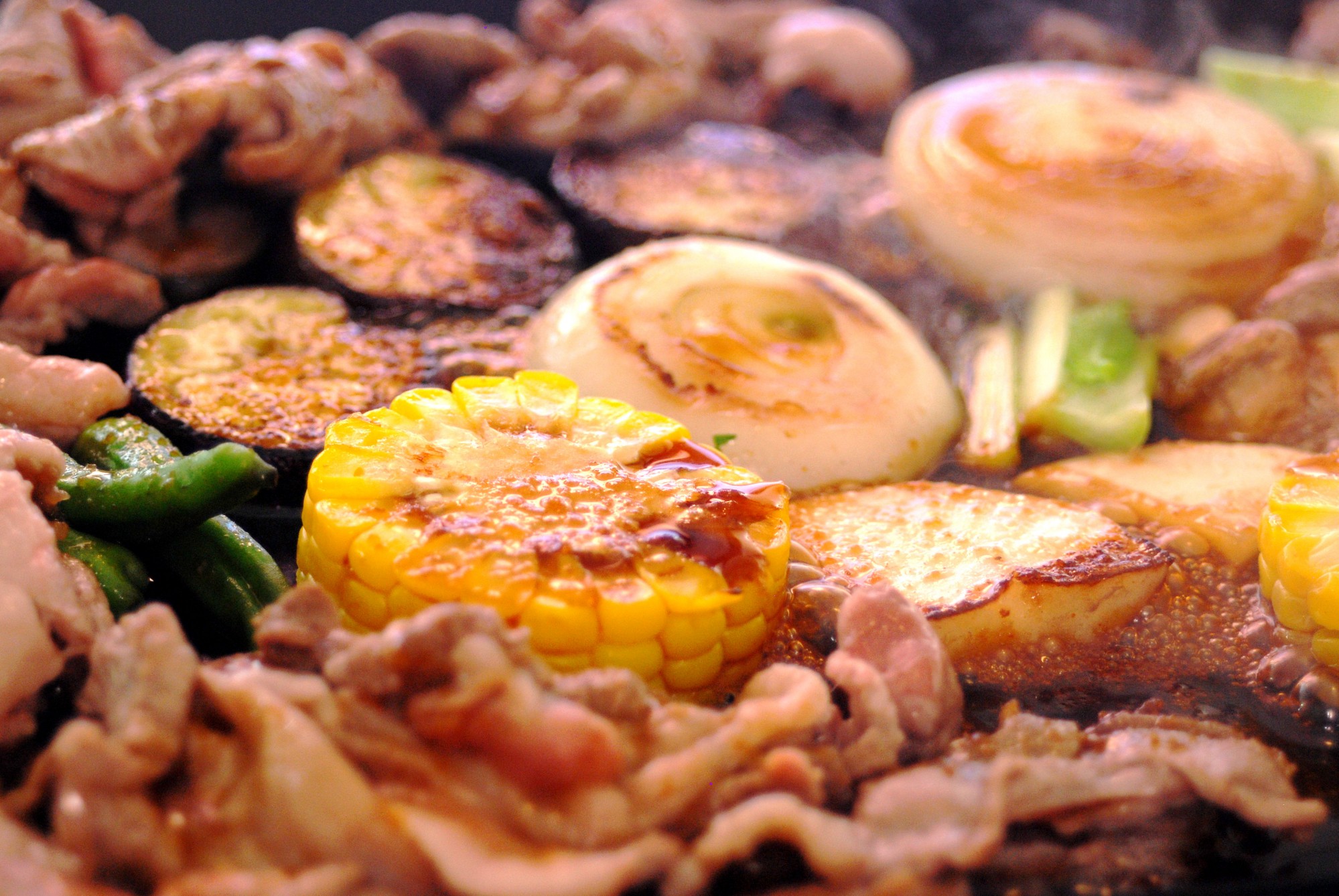 北海道の郷土料理であるジンギスカンは、子羊の肉(ラム)と一緒に野菜を焼いて食べるのが特徴です。一般的には玉ねぎやとうもろこし、もやし、かぼちゃやキャベツなど、北海道でよく栽培されている野菜を中心に使いますが、今回は千葉県で栽培されている野菜を主に使います。