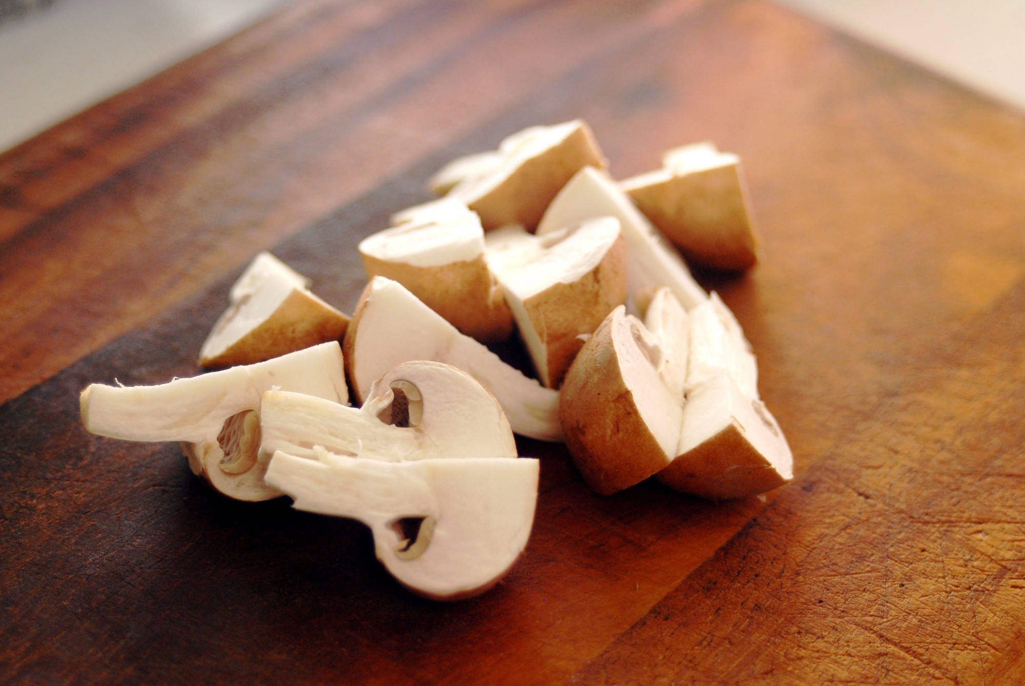大きめのマッシュルームでしたので、今回は4等分にカットしました。小さめのマッシュルームなら半分もしくは丸ごと使って構いません。サイズに応じて適宜調整してくださいね。