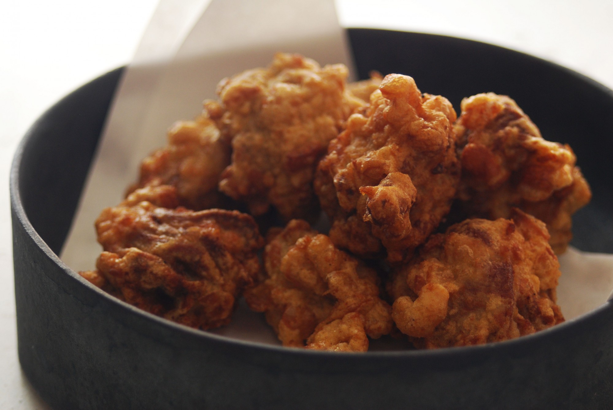 刻んだ茹で落花生を衣に混ぜ込むのがポイントですが、茹で落花生はあまり細かくしない方が香りがよく立ちます。ただしあまり粒が大きいとうまく衣と絡まないので、5mm角くらいを目安に刻むといいでしょう。