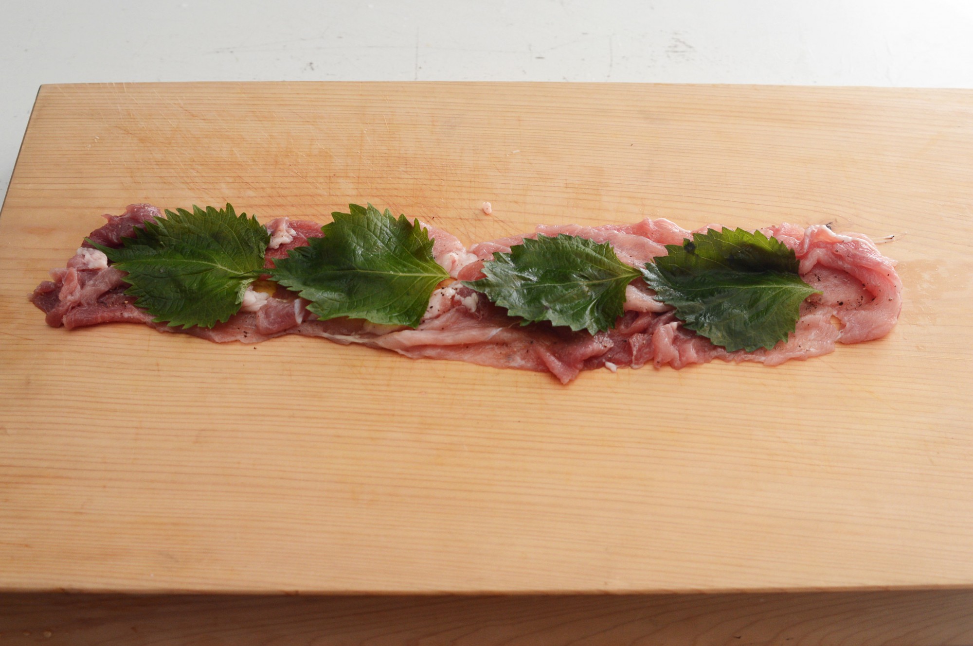 ②肉で大葉を包む