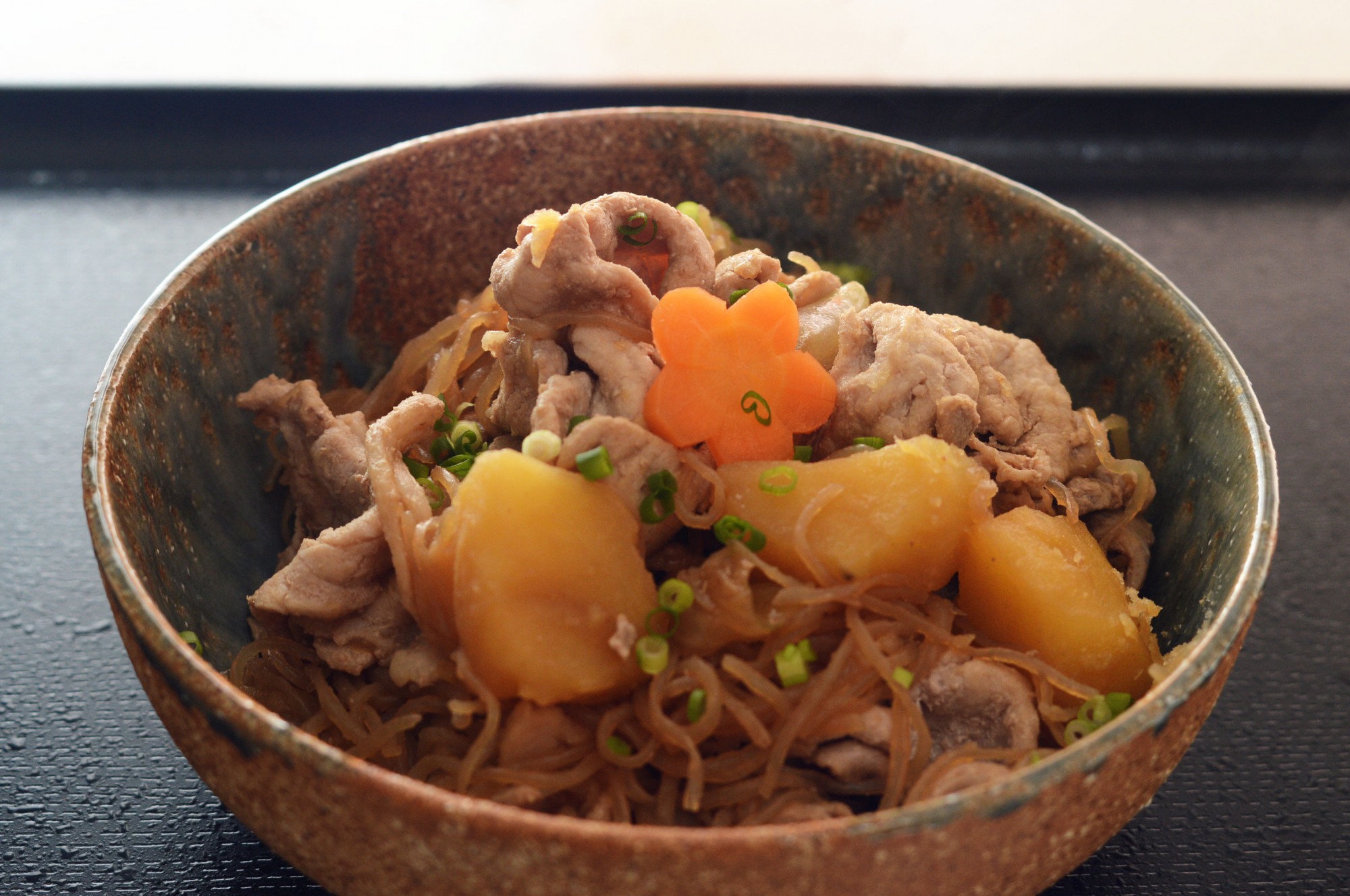 ③じゃがいもに串がスッと通るくらい柔らかくなったら最後に肉を加え、肉に火が通ったら完成です。最後に小ねぎを散らしたり、飾り切りにした茹でにんじんなどを添えたりすると見栄えしますよ。