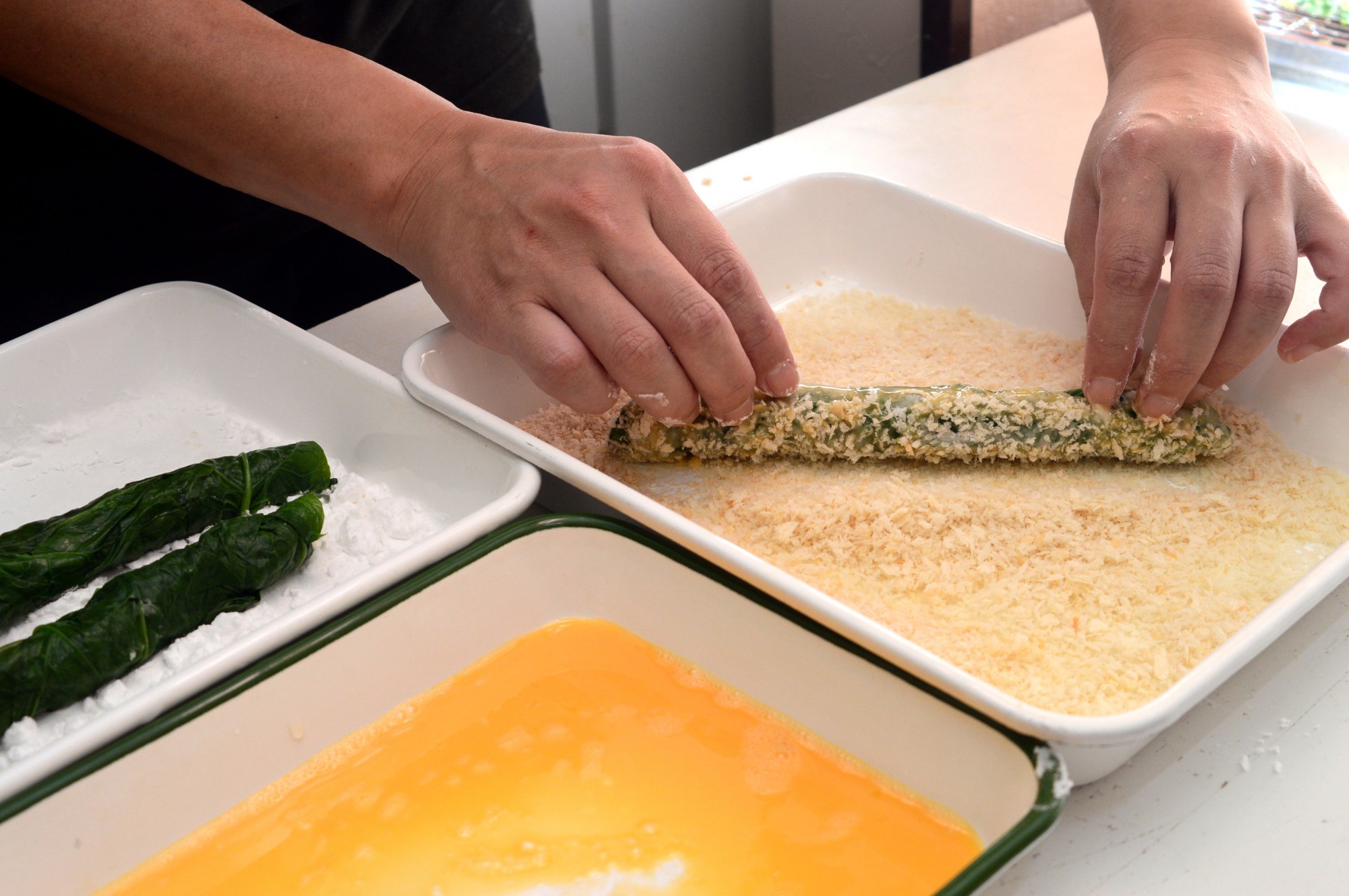 ④ほうれん草で具を包む