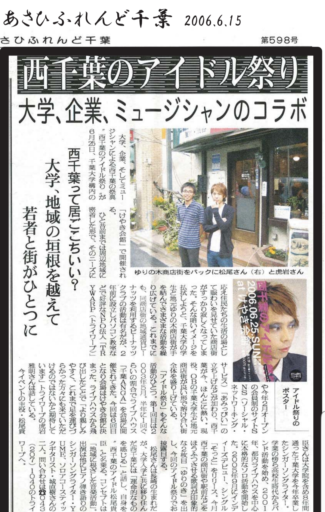 街おこしのシンボリックな存在という感じだったんです(笑)。「アイドル祭り」は、4年間続きました。学生が地元商店街のイベントを手伝ったり、地元IT企業や大学と連携したりして、街おこしができましたね!