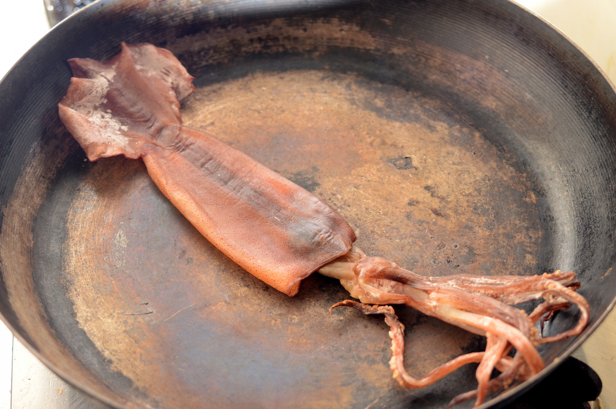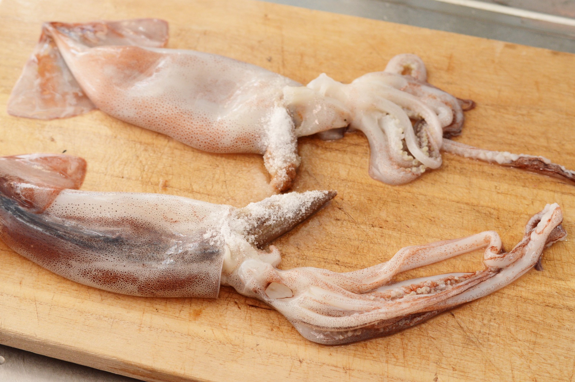 次に、スルメイカ全体に塩を振りかけます。