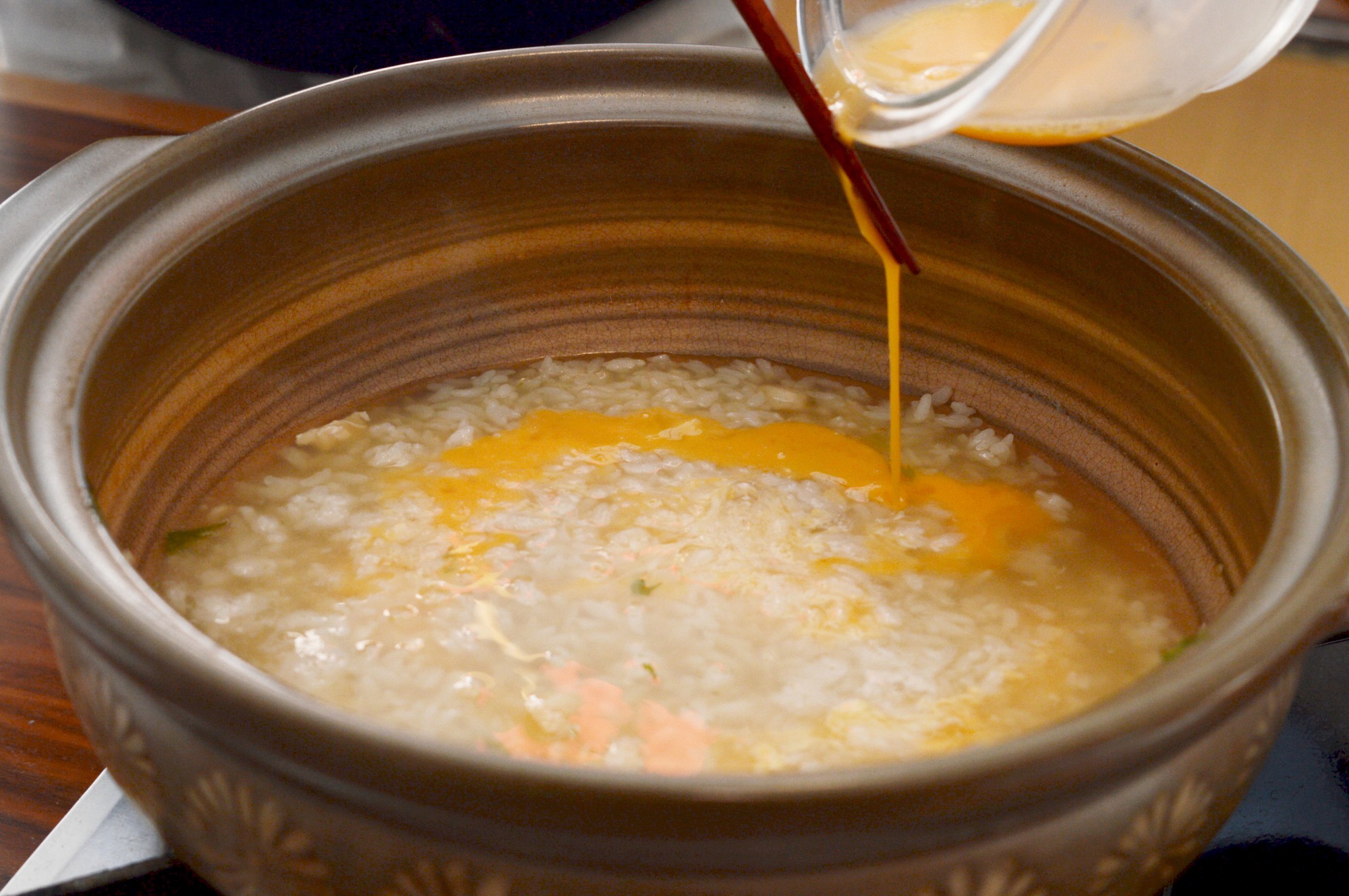 鍋を楽しんだら最後は残ったスープにご飯と溶き卵を加え、締めの雑炊を楽しみます。