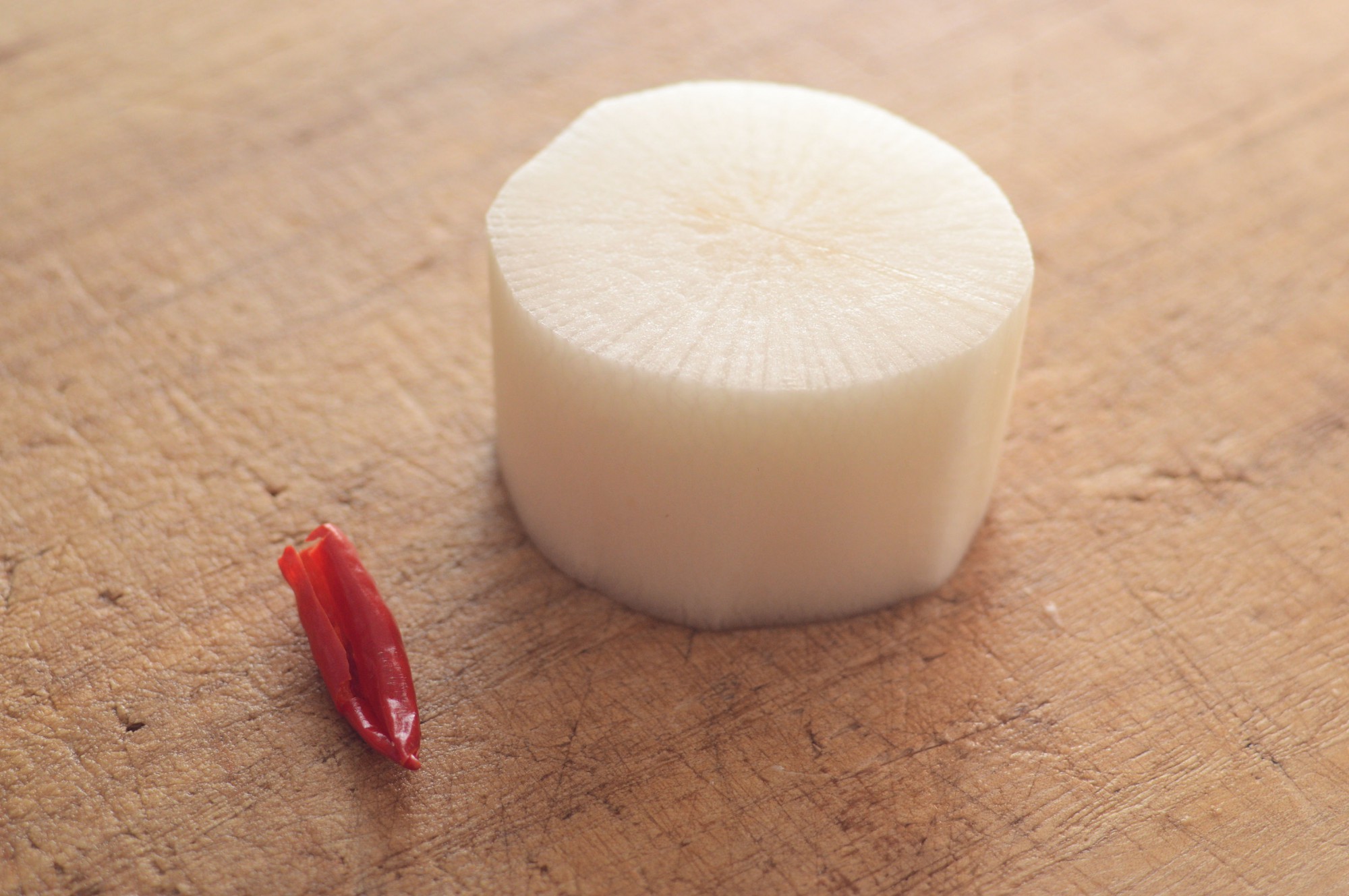 今回使うのは大根と、種を取り除いた鷹の爪です。