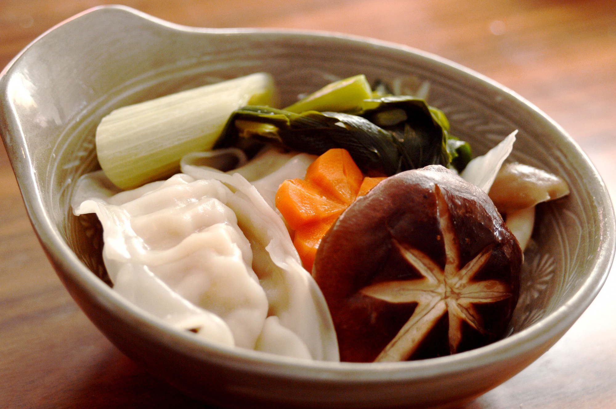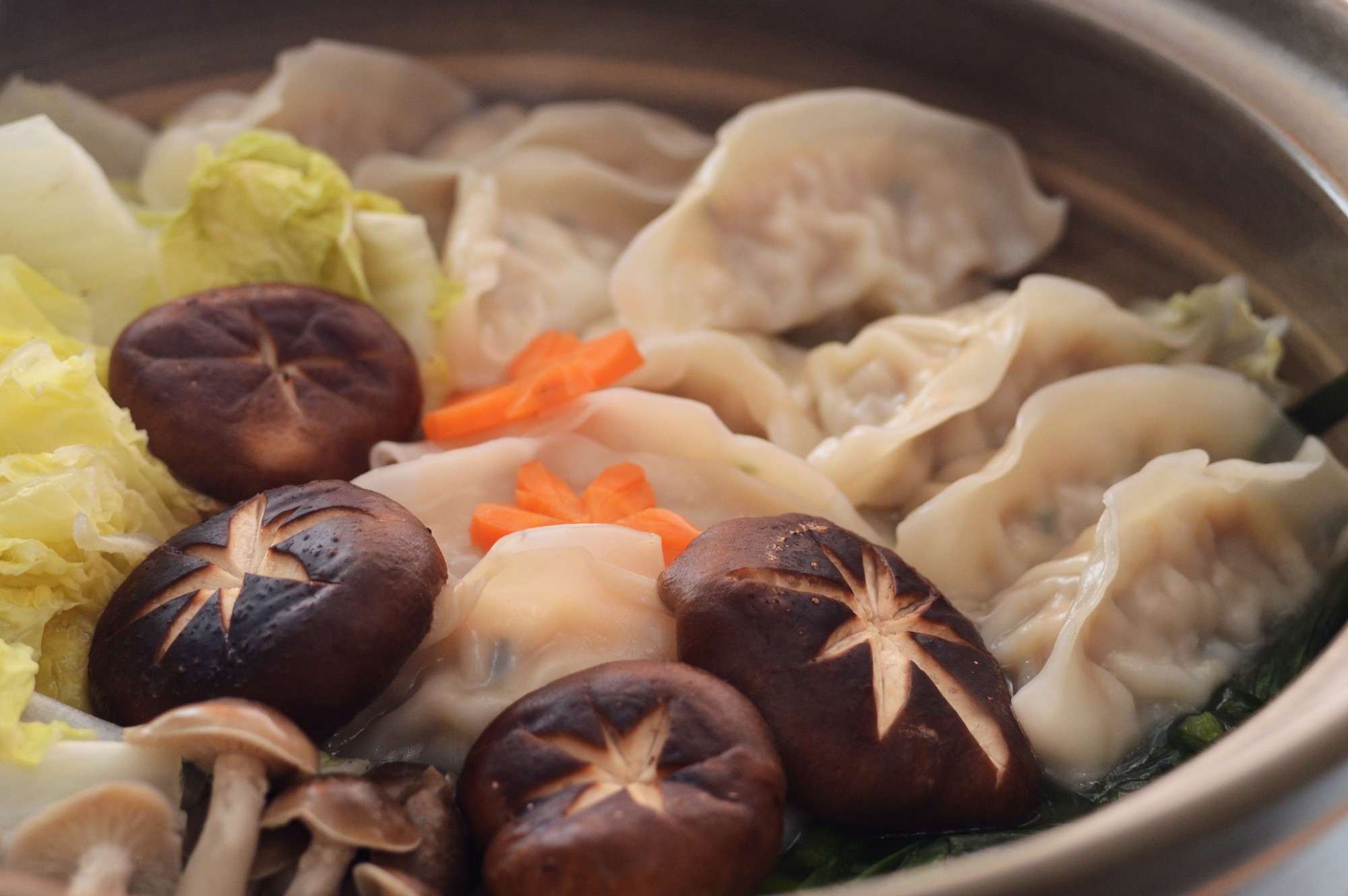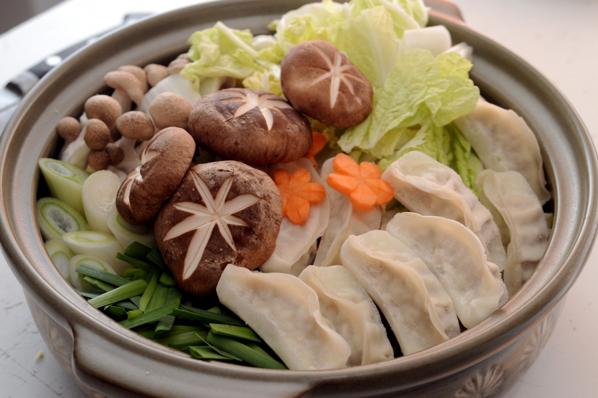 具材のにんじんやしいたけは、写真のように飾り切りを施すといっそう華やかになります。こうしたちょっとした手間をかけると、シンプルな餃子鍋も特別感を増してくるから不思議。