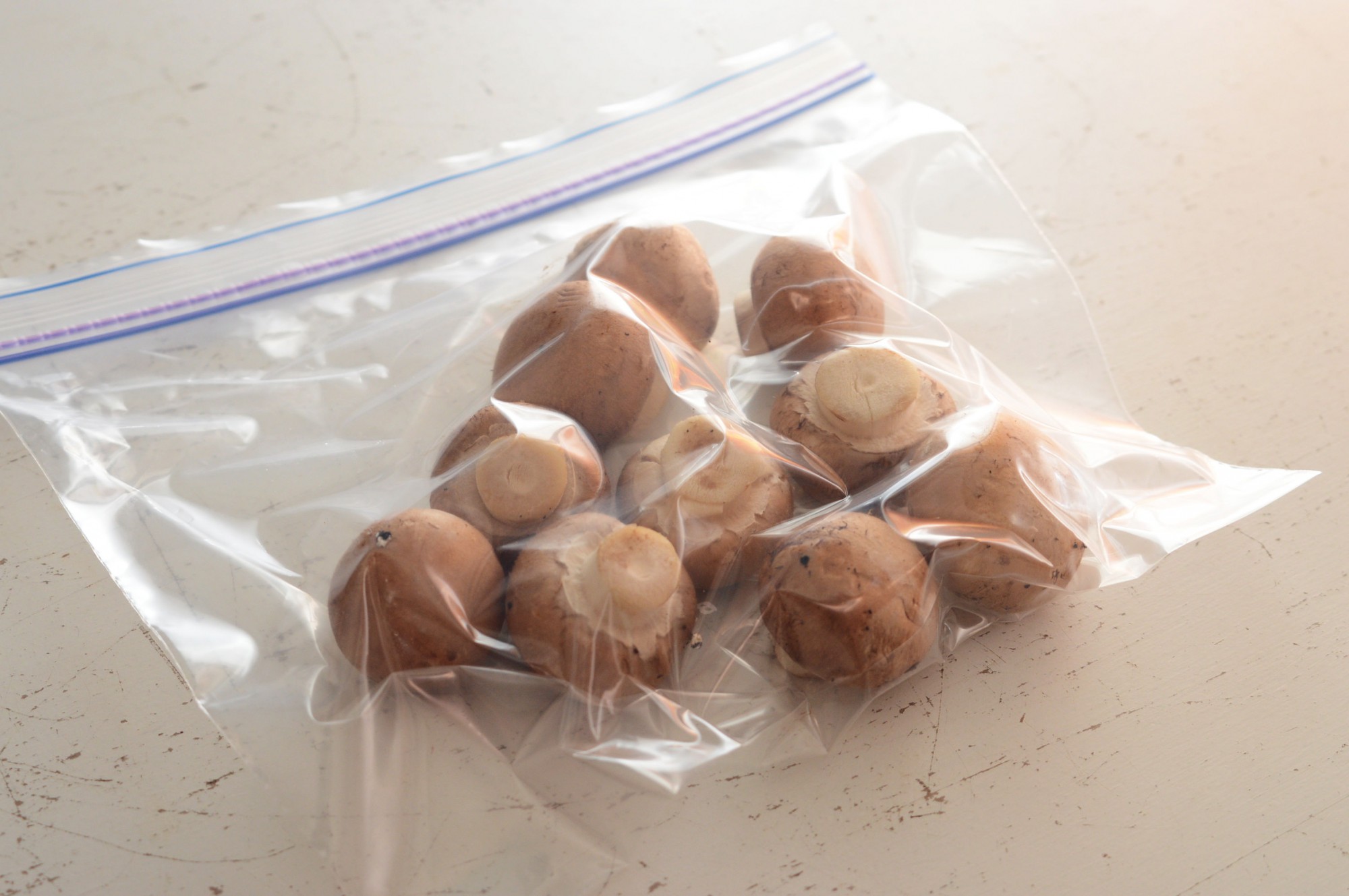 マッシュルームはチャック付き保存袋などにそのまま入れ、空気をしっかり抜いて冷蔵保存しましょう。