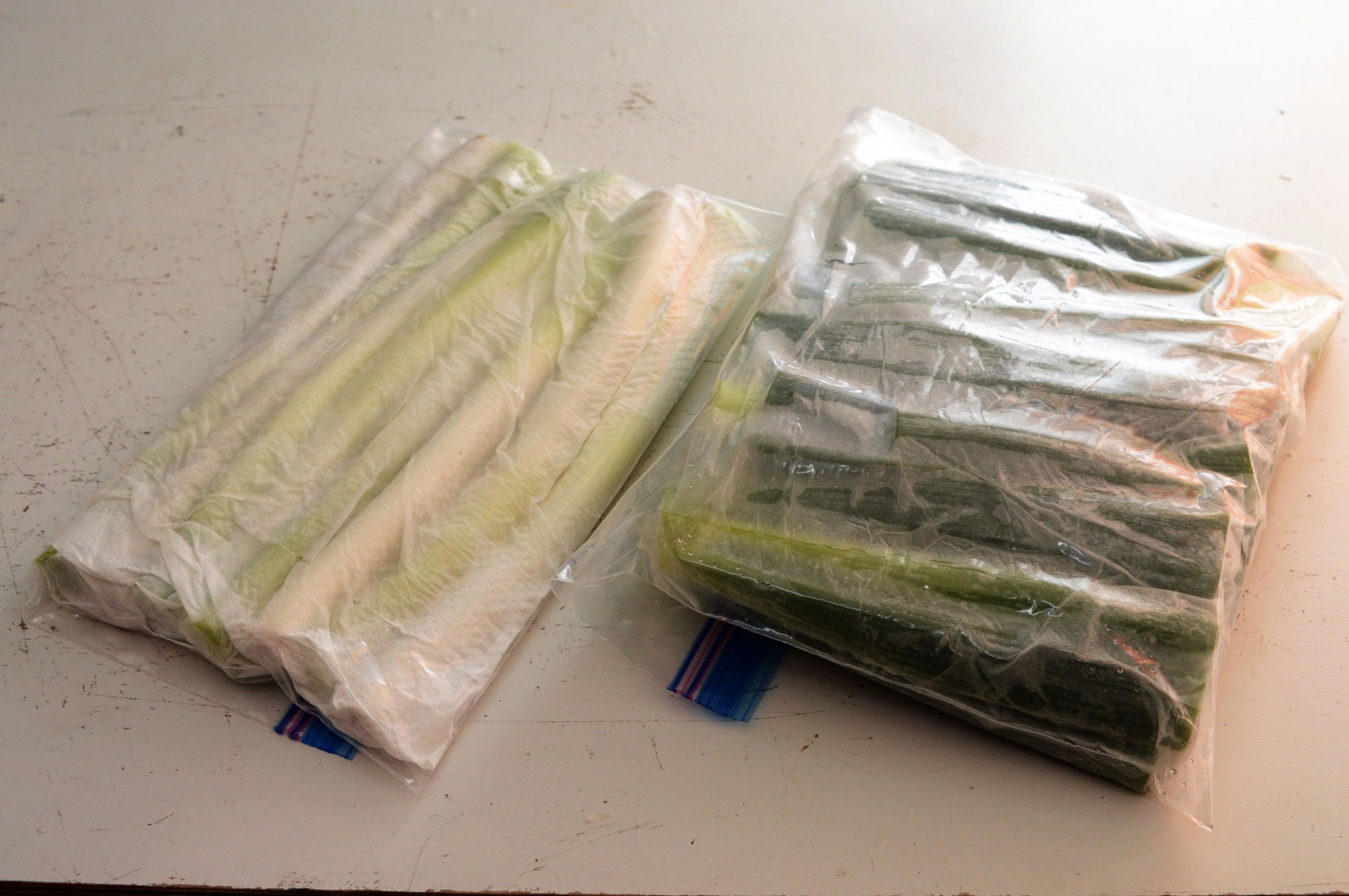 保存方法はどちらも同じで、濡らしたキッチンペーパーなどに包んでチャック付きの保存袋に入れ、野菜室で保存します。ペーパーはにおいが強くなってくるので、一週間を目安に交換しましょう。