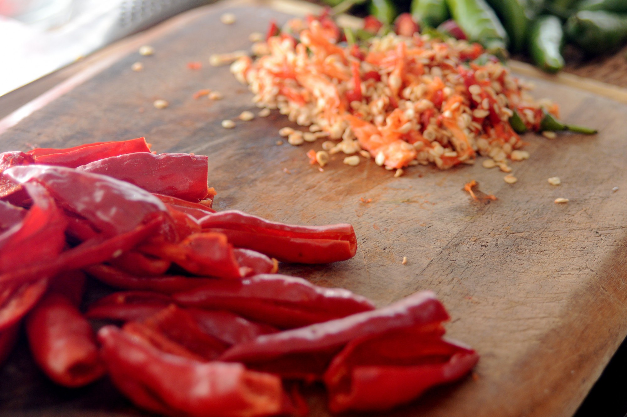 すべての唐辛子の種とヘタを取り除いたら、次の工程に進みましょう。