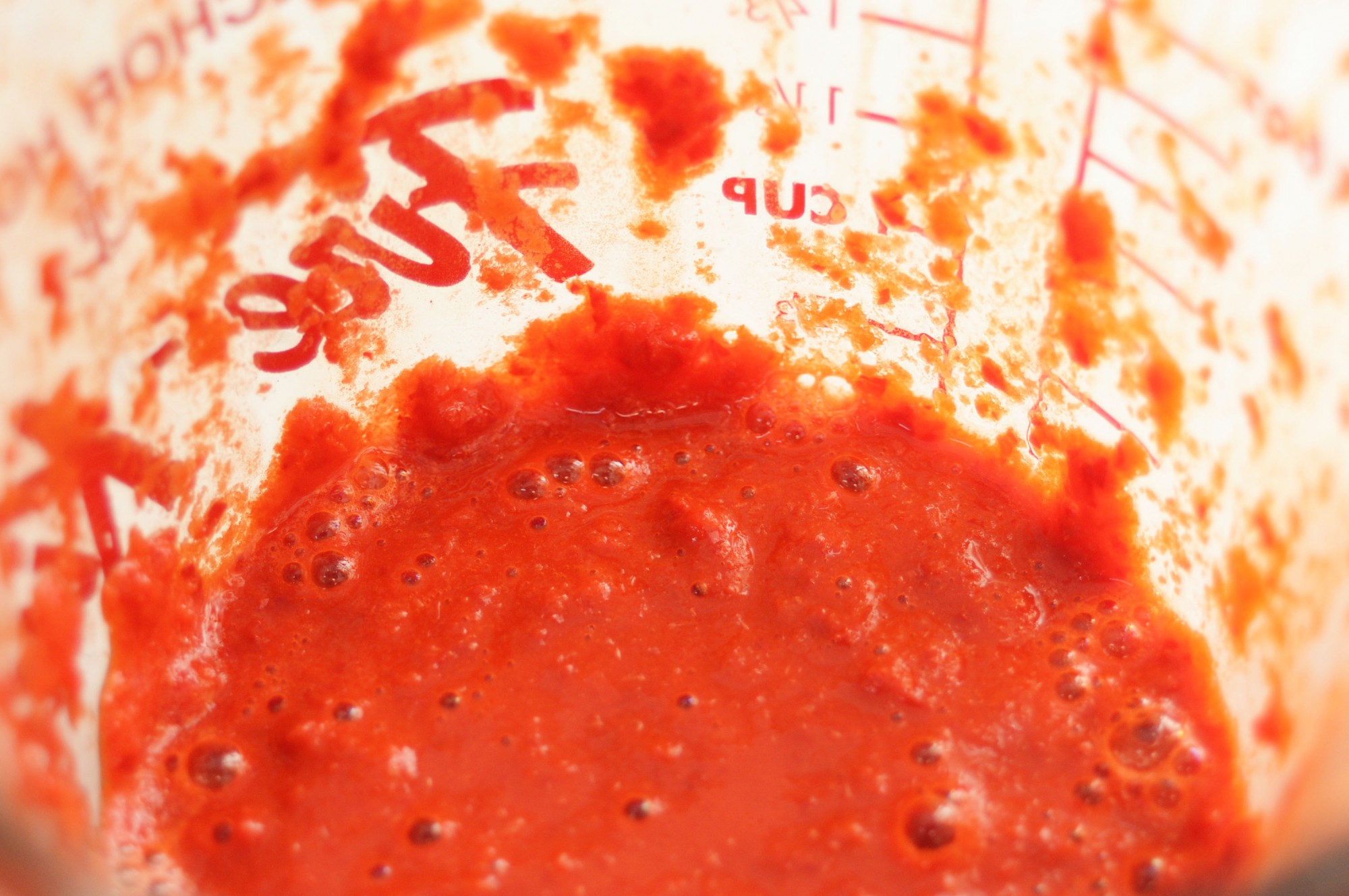写真のような状態になるまで、入念に砕きましょう。この工程が、チリペッパーソース作りにおいてもっとも手間のかかる工程です。逆にいうと、ここさえクリアしてしまえば後はほとんど手間がかかりません。