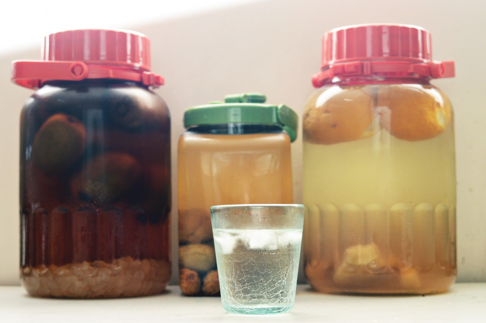 それぞれの分量はお好みで調整してかまいません。フルーツは保存ビンの1/3~半分ほど、氷砂糖はフルーツの1/3~半分ほどの量を。ホワイトリカーなどのお酒は、フルーツと砂糖が入ったビンにたっぷり入る量が目安です。