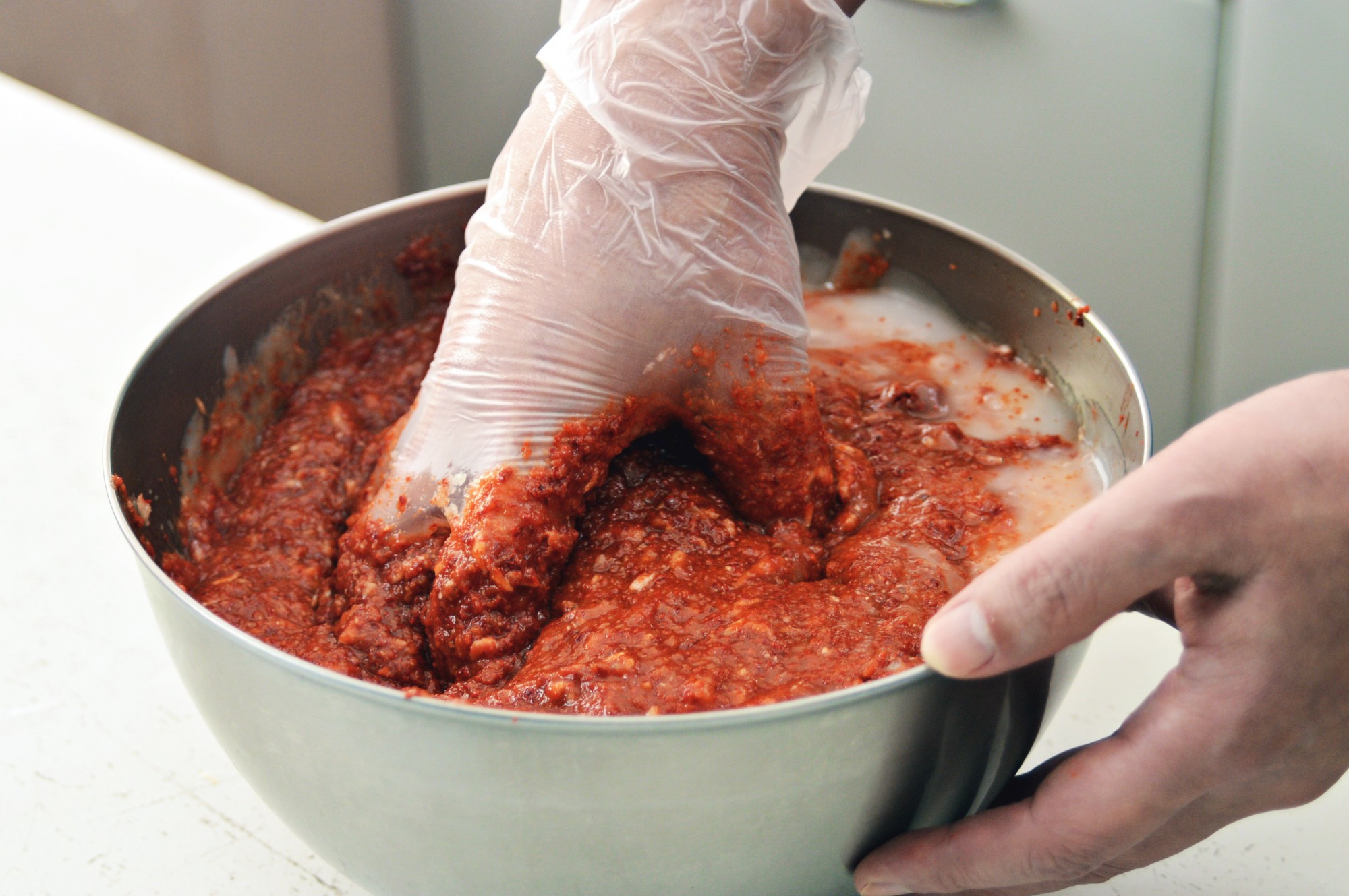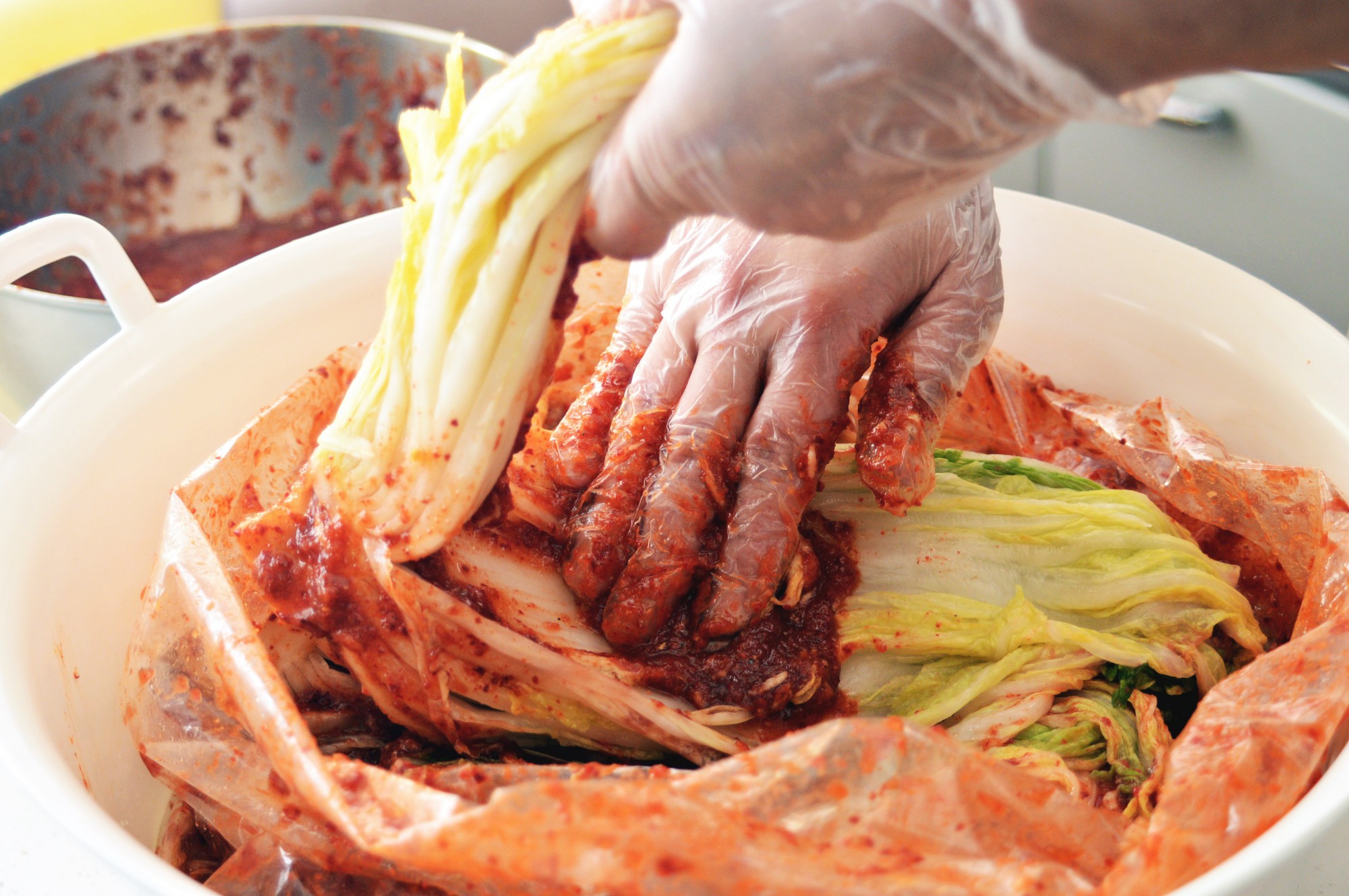 ⑤キムチの素を白菜に塗って漬ける
