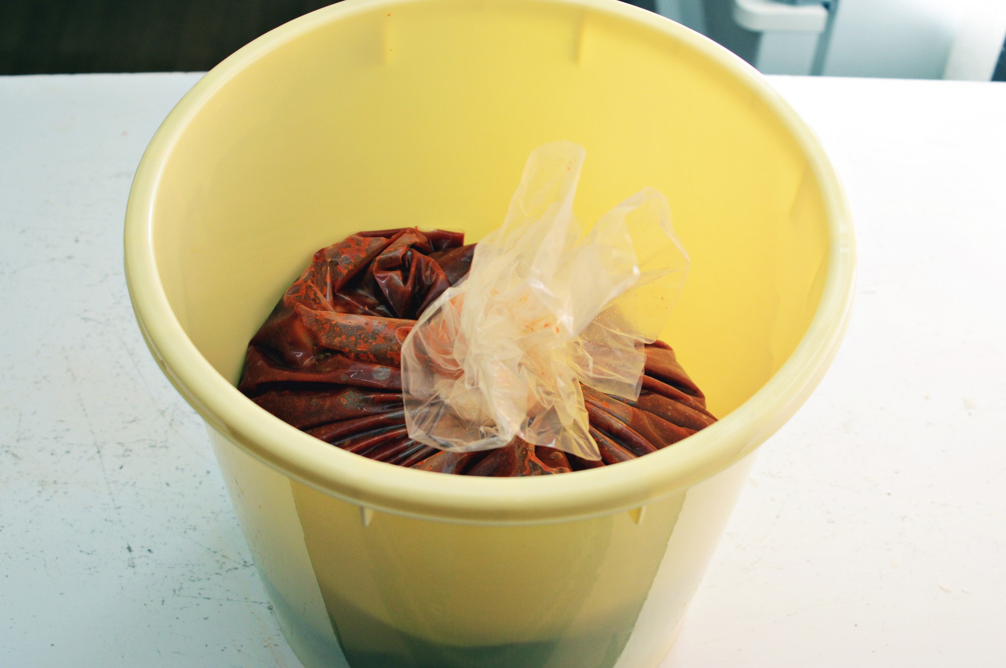 ちなみに唐辛子の色が容器に移ると落ちなくなる可能性があるので、漬物用のビニール袋などに入れて保存するのがおすすめです。